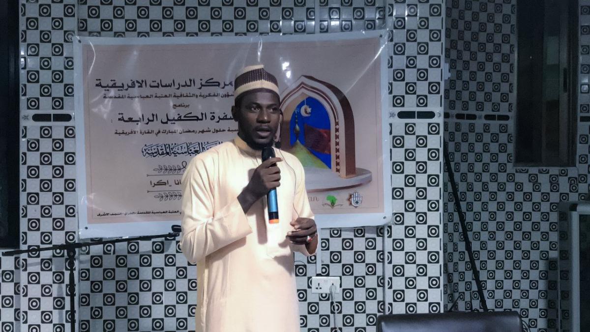 <p dir="RTL" style="margin-left:0in; margin-right:0in; text-align:right"><span style="font-size:11pt"><span style="font-family:Calibri,"sans-serif""><strong><span style="font-size:16.0pt"><span style="font-family:"Sakkal Majalla"">أَقامَ مركزُ الدّراسات الأفريقيّة التابع لقسم الشؤون الفكريّة والثقافيّة في العتبة العبّاسية المقدّسة، برنامجاً عباديّاً رمضانيّاً سنوياً بعنوان: (سفرة الكفيل) انطلق مع إطلالة الشهر الفضيل في (13) دولةً أفريقيّة ويستمر حتى آخر أيامه.</span></span></strong></span></span></p>