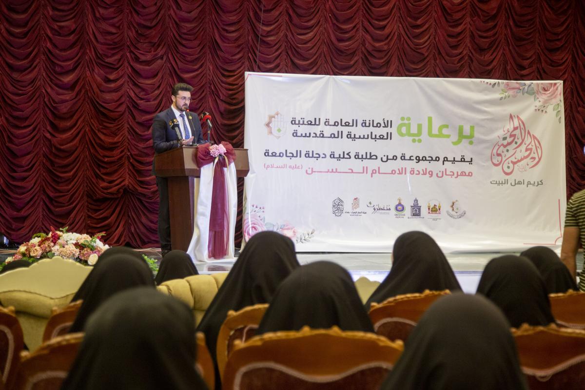 احتفاءً بالذكر ى العطرة لولادة الإمام الحسن(عليه السلام) العتبة العباسيّة المقدسة ترعى مهرجاناً في كلّية دجلة الجامعة
