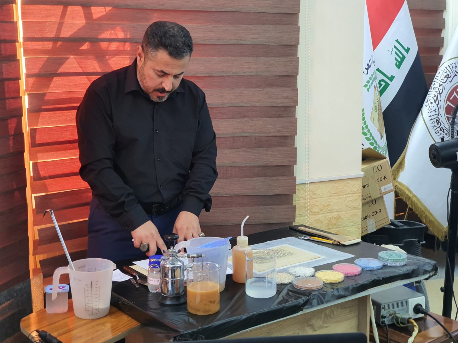 مدير قسم الترميم الأستاذ لطيف الجبوري في المركز المذكور بين:" شرح في هذه الدورة وبشكل مفصل أهم المراحل التي تمر بها المخطوطة ابتداء من استلامها وعمل دراسة طبيعية عليها لتوثيق الأضرار الموجودة فيها مع عمل بطاقة تعريفية خاصة بها، ثم كيف يتم إدخال المخطوطة إلى المختبر البايلوجي لإجراء الفحص عليها ومكافحة الإصابة الموجودة ".