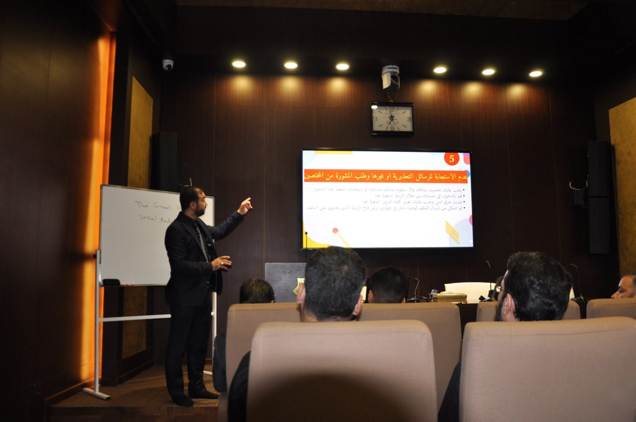 أقام قسم الشؤون الفكريّة والثقافيّة في العتبة العبّاسيّة المقدّسة دورة تخصّصية بعنوان: (الوعي الأمني السيبراني) لمجموعة من منتسبيه، حاضر فيها الدكتور محمد محسن العبادي، واحتضنتها قاعة القاسم (عليه السلام) في الصحن الشريف.
