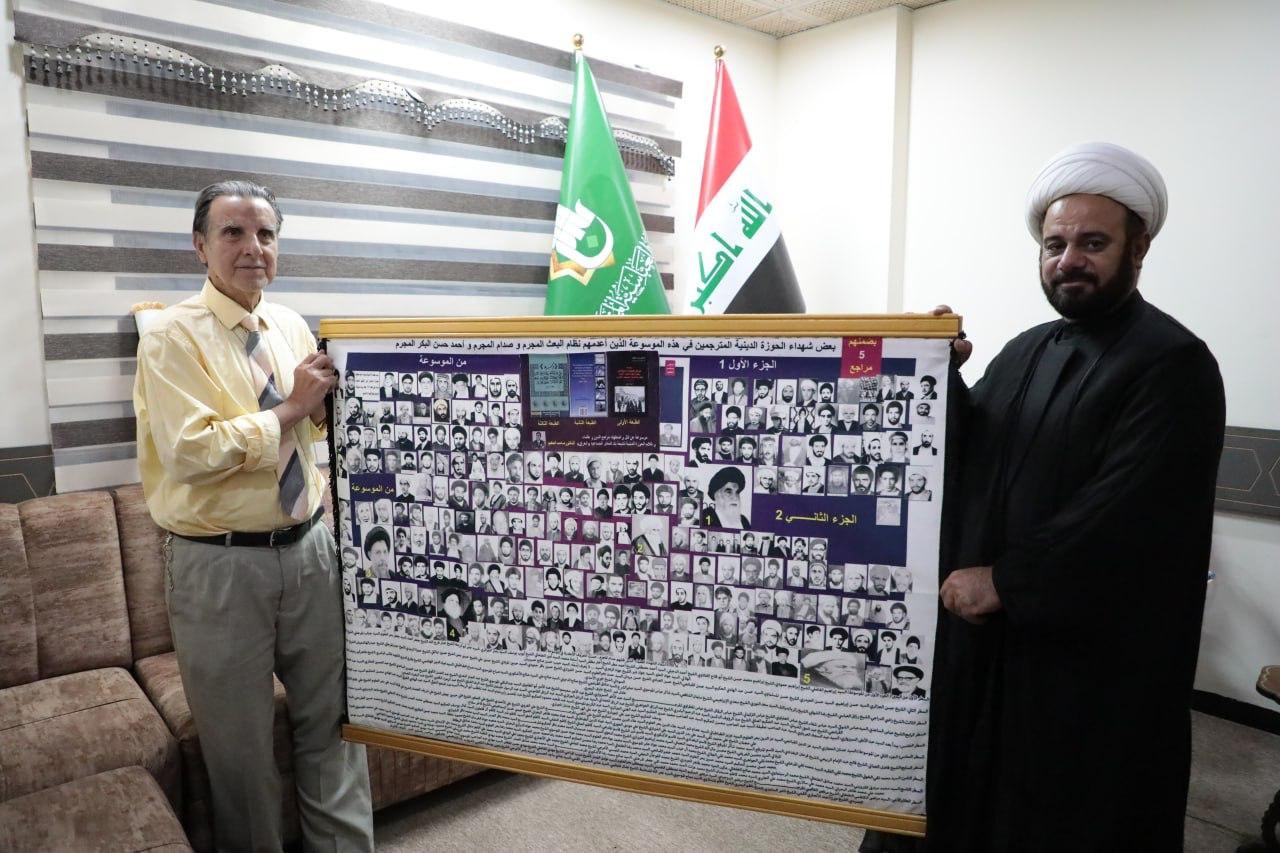 وجرى خلال اللقاء بحث مجموعة من الموضوعات التي تخص توثيق جرائم حزب البعث ،لا سيما جرائمه ضد العلماء وطلبة الحوزة العلمية إبّان حقبة الحكم الديكتاتوري.