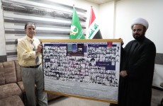 وفي ختام اللقاء تبادل الجانبان إهداء الإصدارات التوثيقية ، من ضمنها لوحة قدّمها الدكتور صاحب الحكيم تضمّ صورًا لضحايا إجرام حزب البعث البائد.