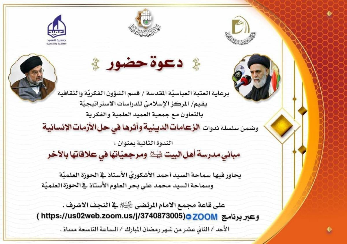 دعوةٌ لحضور الندوة الثانية عن الزعامات الدينيّة وأثرها في حلّ الأزمات الإنسانيّة