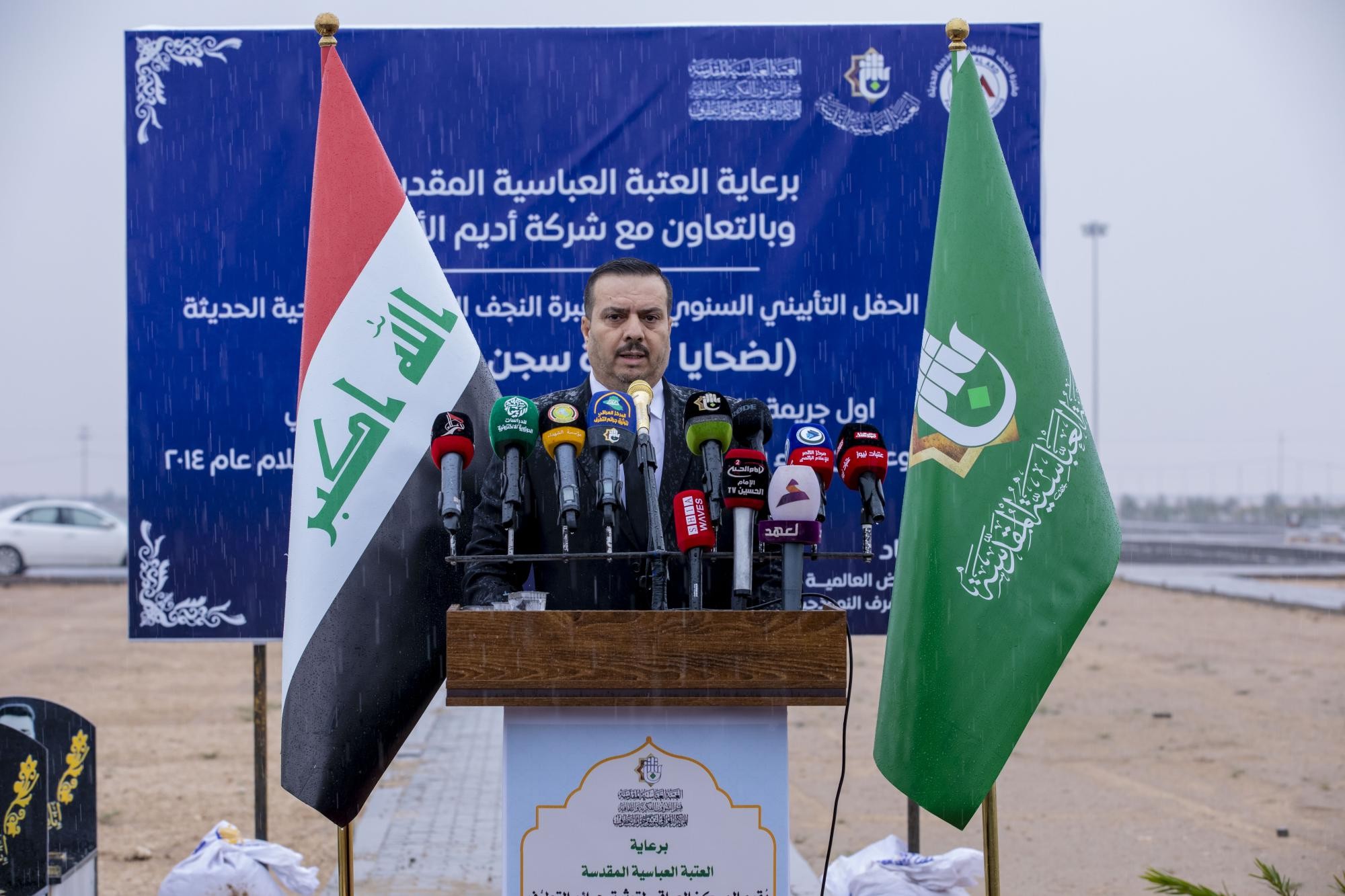 جاء ذلك عبر كلمة العوائل التي ألقاها ممثّلاً عنهم السيد مدين الشمري، خلال مراسيم افتتاح العتبة العباسية لمقبرة ضحايا البعث والتطرّف في النجف الأشرف.