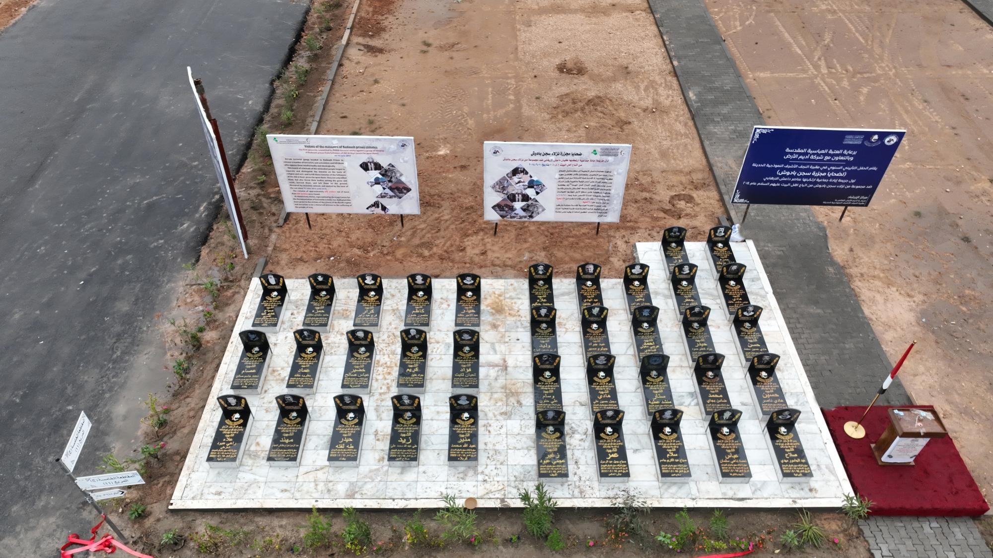 وقال الشمري: "أتقدّم بجزيل الشكر والعرفان للعتبة العباسية المقدّسة، متمثّلةً بالمركز العراقي لتوثيق جرائم التطرّف ومديره الدكتور عباس القريشي، لما بذلوه من جهود تستحقّ الشكر والثناء بدءاً من تبرّعهم بنعوش التشييع، مروراً بتغسيل وتكفين الشهداء والتبرّع بتخصيص هذه المقبرة، ودفن شهدائنا وبناء قبورهم".