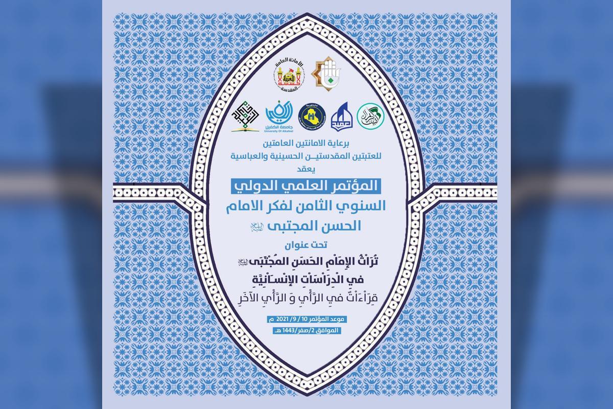 أعلنت اللجنةُ التحضيريّة للمؤتمر العلميّ الدوليّ السنويّ الثامن لفكر الإمام الحسن المجتبى(عليه السلام)، الذي سيُعقد تحت عنوان: ((تُرَاثُ الإِمَامِ الحَسَنِ المُجْتَبَى (عليه السلام) فِي الدِّرَاسَاتِ الإنسَانِيَّةِ.. قِرَاءَاتٌ فِي الرَّأيِ وَالرَّأيِ الآخَرِ)) يوم الجمعة (10 أيلول 2021م) الموافق (2 صفر 1443هـ).