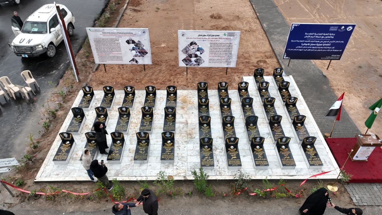 موضحاً: واقيم حفل تأبيني ، لضحايا مجزرة سجن بادوش، بحضور رسمي واممي تمثل بوفود العتبات المقدسة(العلوية والحسينية والعسكرية والعباسية) والذي ضم عدداً من مسؤوليها ورؤساء أقسامها، وممثّل رئيس الوزراء السيد زيدان خلف وممثل وزير العدل السيد احمد لعيبي، ورئيس مؤسسة الشهداء الدكتور عبد الإله النائلي، ورئيس مؤسسة السجناء الدكتور حسين السلطاني، وممثل المستشار الخاص للامم المتحدة رئيس فريق التحقيق الدولي(يونتداد) السيد انيس احمد، وجمع من الضيوف وعوائل الشهداء.
