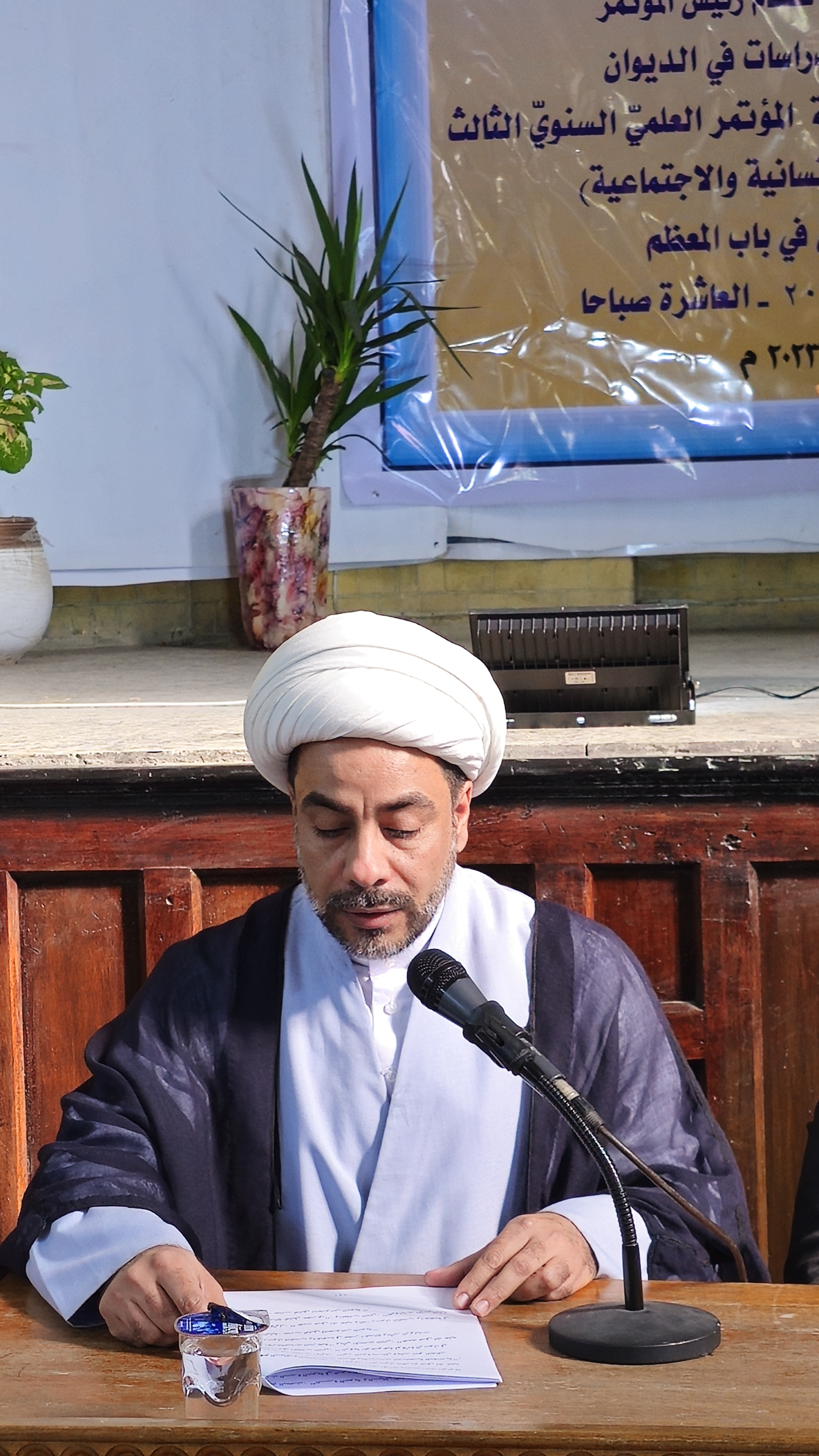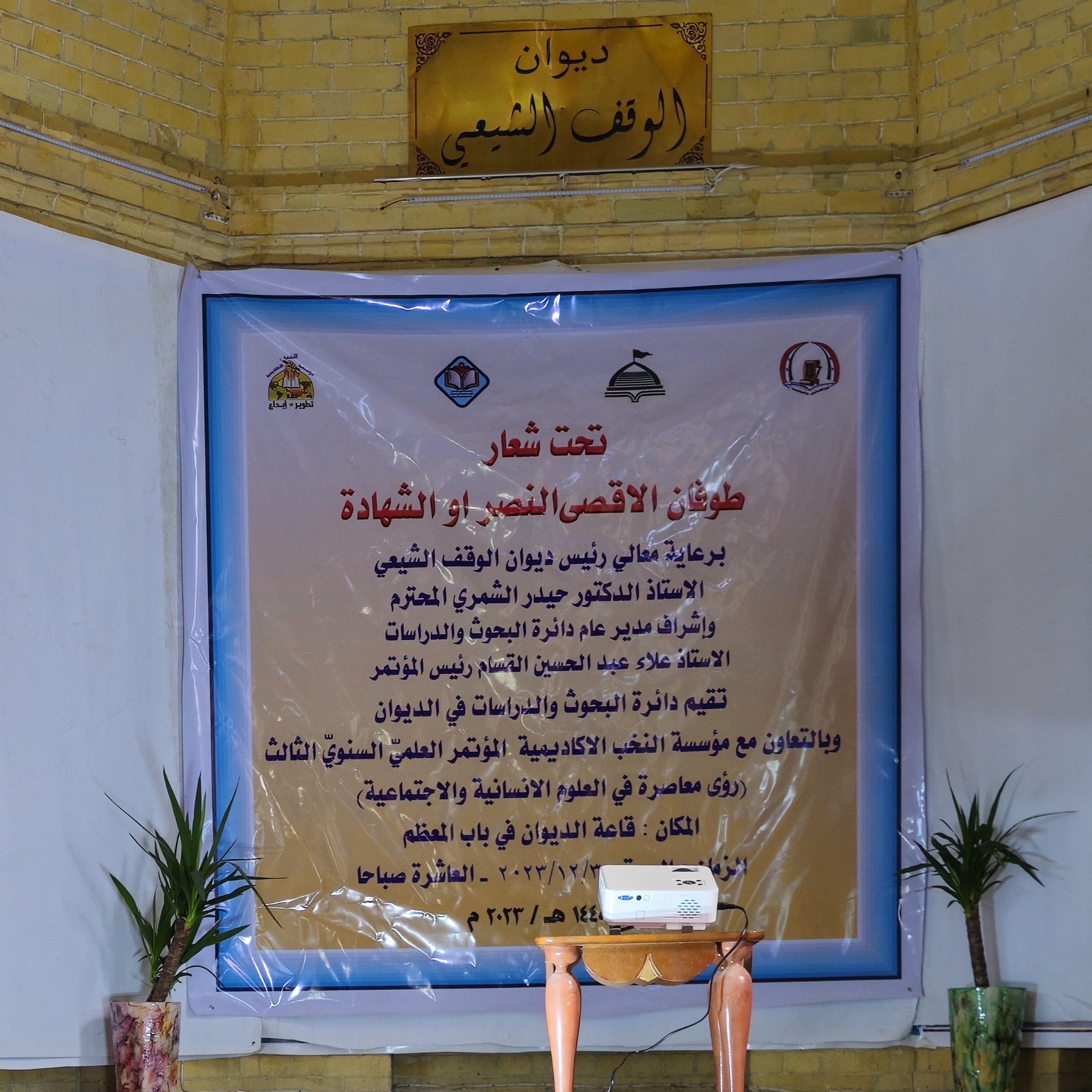 يُذكر أنّ المؤتمر المذكور عُقد بعنوان: (روئ معاصرة في العلوم الإنسانيّة والاجتماعيّة)، وتحت شعار: (طوفان الأقصى.. النصر أو الشهادة)، بتاريخ: (30/ 12/ 2023م) في قاعة الديوان المركزيّة.