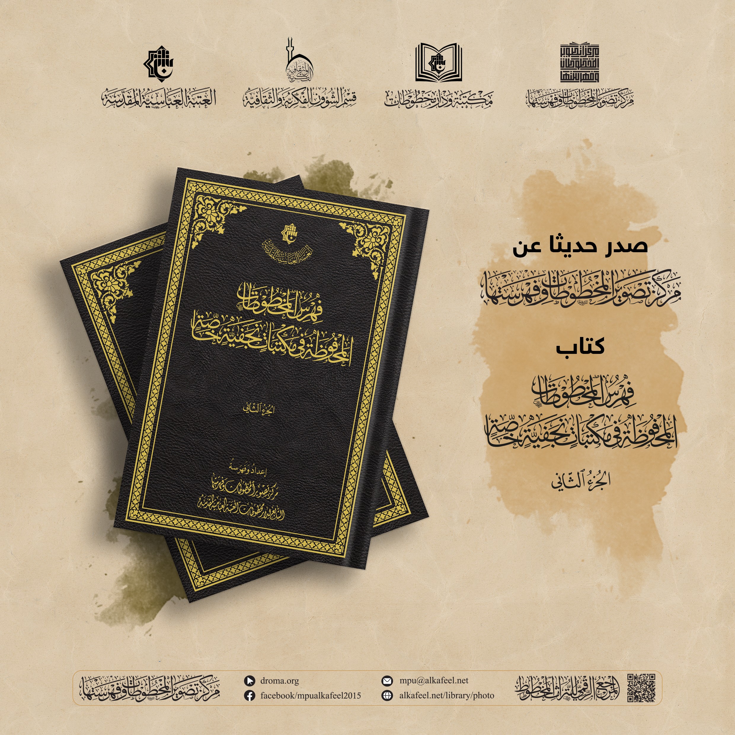 صدَرَ حديثاً عن قسم الشؤون الفكرية والثقافية في العتبة العباسية المقدسة، كتاباً بعنوان (فهرس المخطوطات المحفوظة في مكتبات نجفية خاصة (الجزء الثاني)).