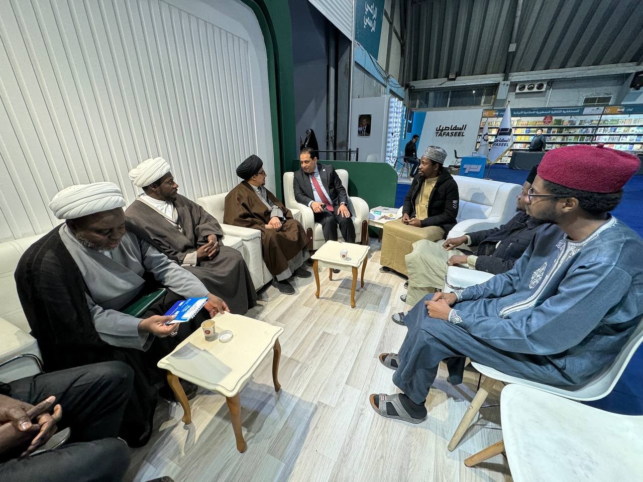 والتقى الوفد الزائر بإدارة المعرض التي بيّنت للوفد أهميّة معرض الكتاب وميزته لهذا العام، وأهم دور النشر العراقية والعربية والعالميّة المشاركة، مقدّمة في الوقت نفسه شكرها وتقديرها لإدارة مركز الدراسات الإفريقيّة على حضورها الكبير في المحافل الثقافيّة والفكريّة في النجف الأشرف، وحرصها على التواصل مع المؤسّسات الفكريّة والعلميّة.