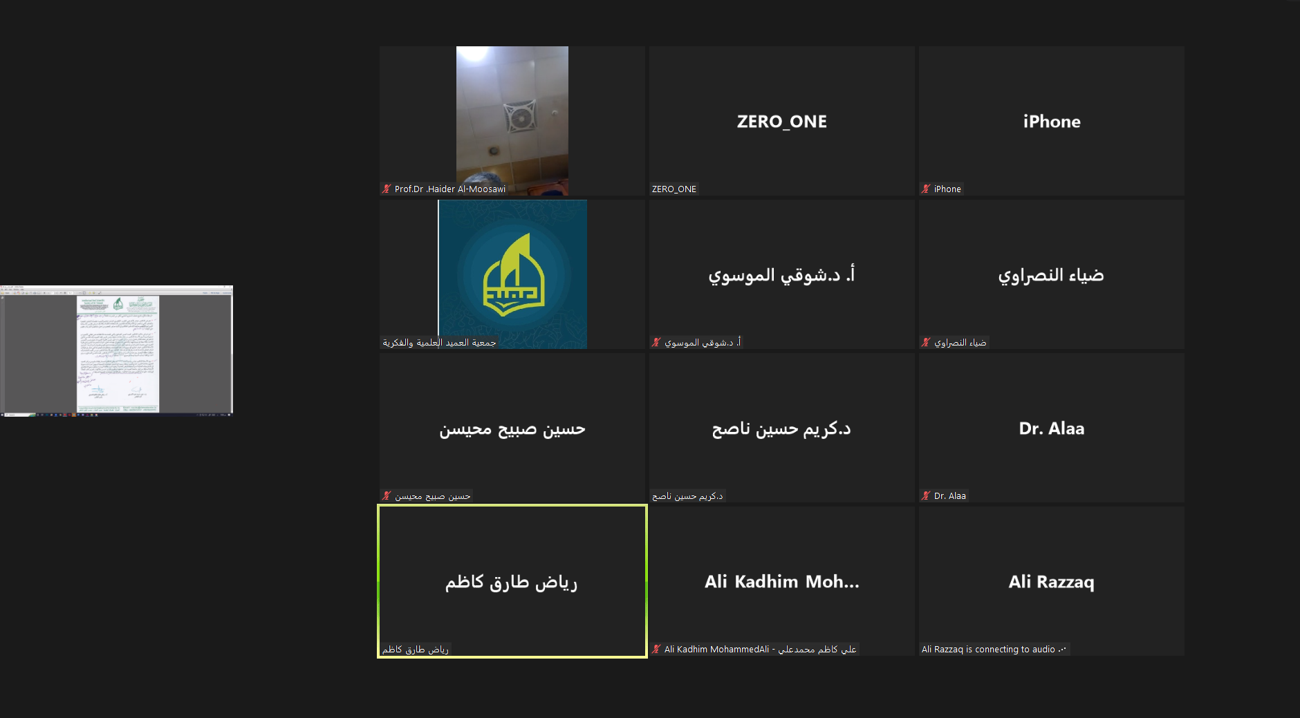 لمناقشة مشاريعها العلميّة والبحثيّة عقدت جمعيّة العميد العلميّة والفكريّة اجتماعها الدوري عبر منصة التواصل الإلكتروني "زووم"، وشارك في الاجتماع أعضاء الهيأة الإدارية برئاسة السيد رئيس الجمعيّة الدكتور رياض طارق كاظم العميدي.
