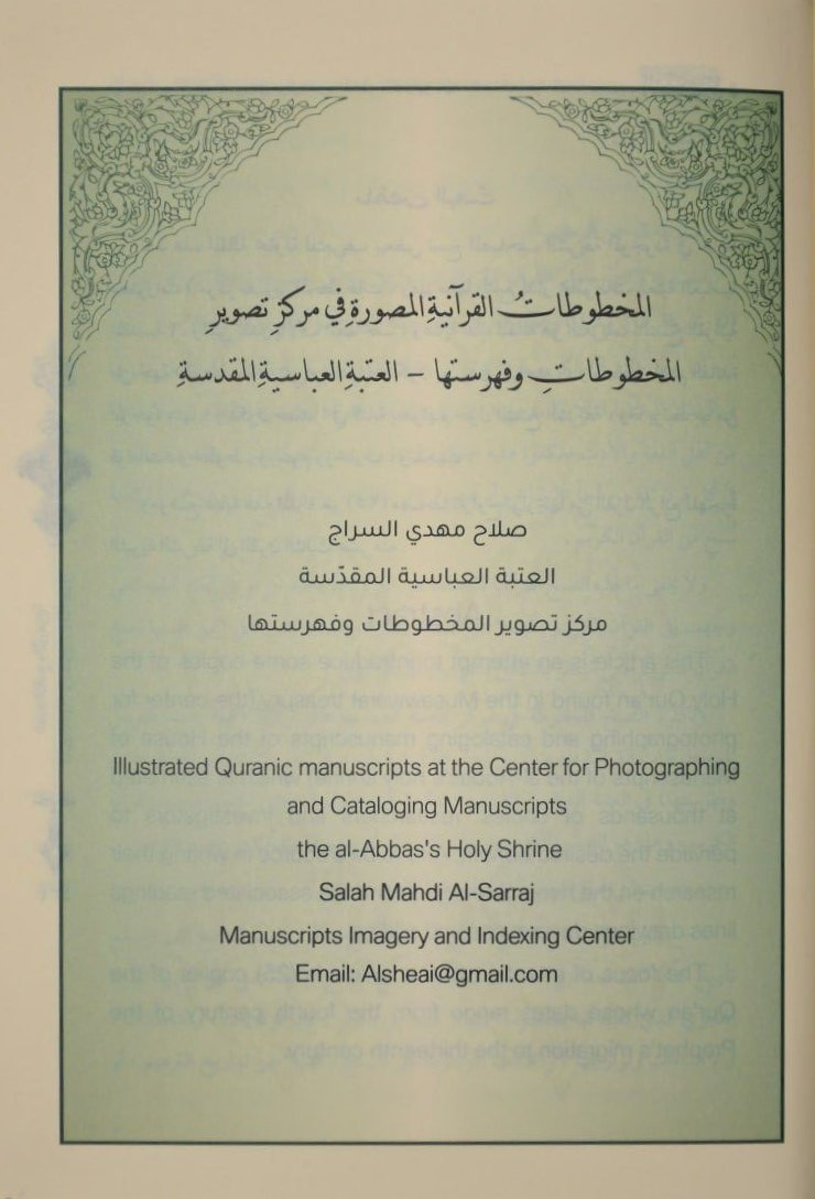 نشر مركز تصوير المخطوطات وفهرستها التابع لقسم الشؤون الفكريّة والثقافيّة في العتبة العبّاسيّة المقدّسة بحثاً علميّاً عن المخطوطات القرآنيّة المصوّرة.