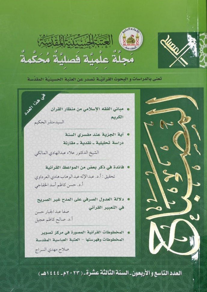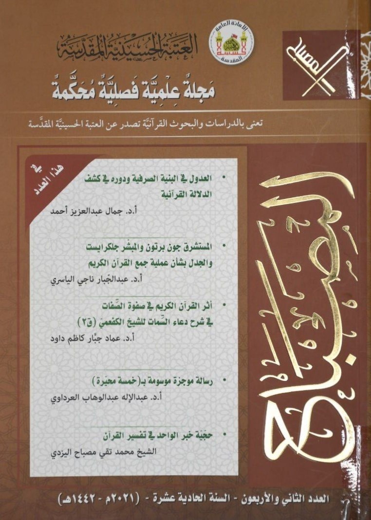 واختتم السرّاج: "نُشر البحث في العدد التاسع والأربعين من مجلّة المصباح، وهي مجلّة علميّة فصليّة محكّمة، تعنى بالدراسات والبحوث القرآنيّة، تصدر عن العتبة الحسينيّة المقدّسة".