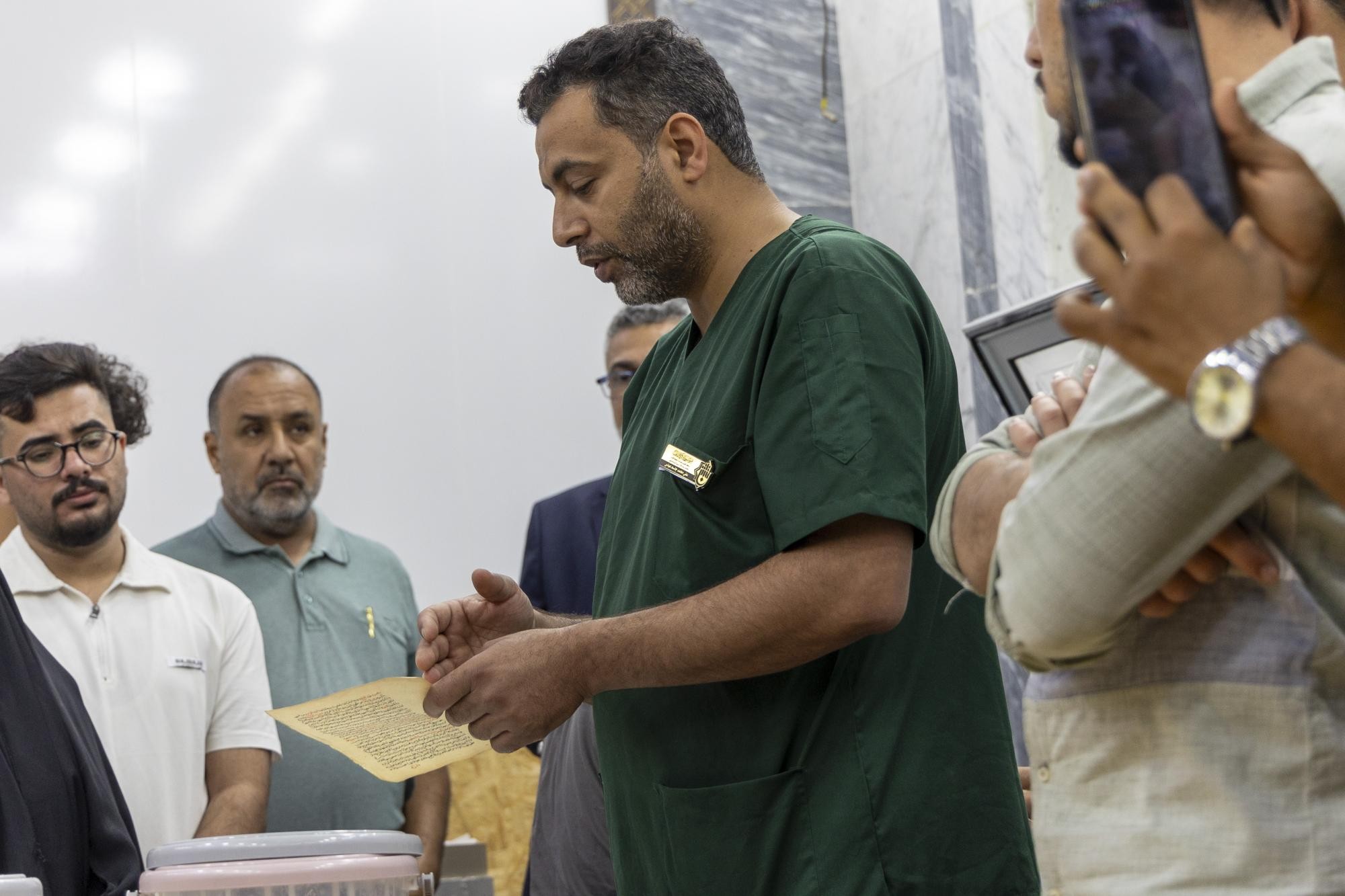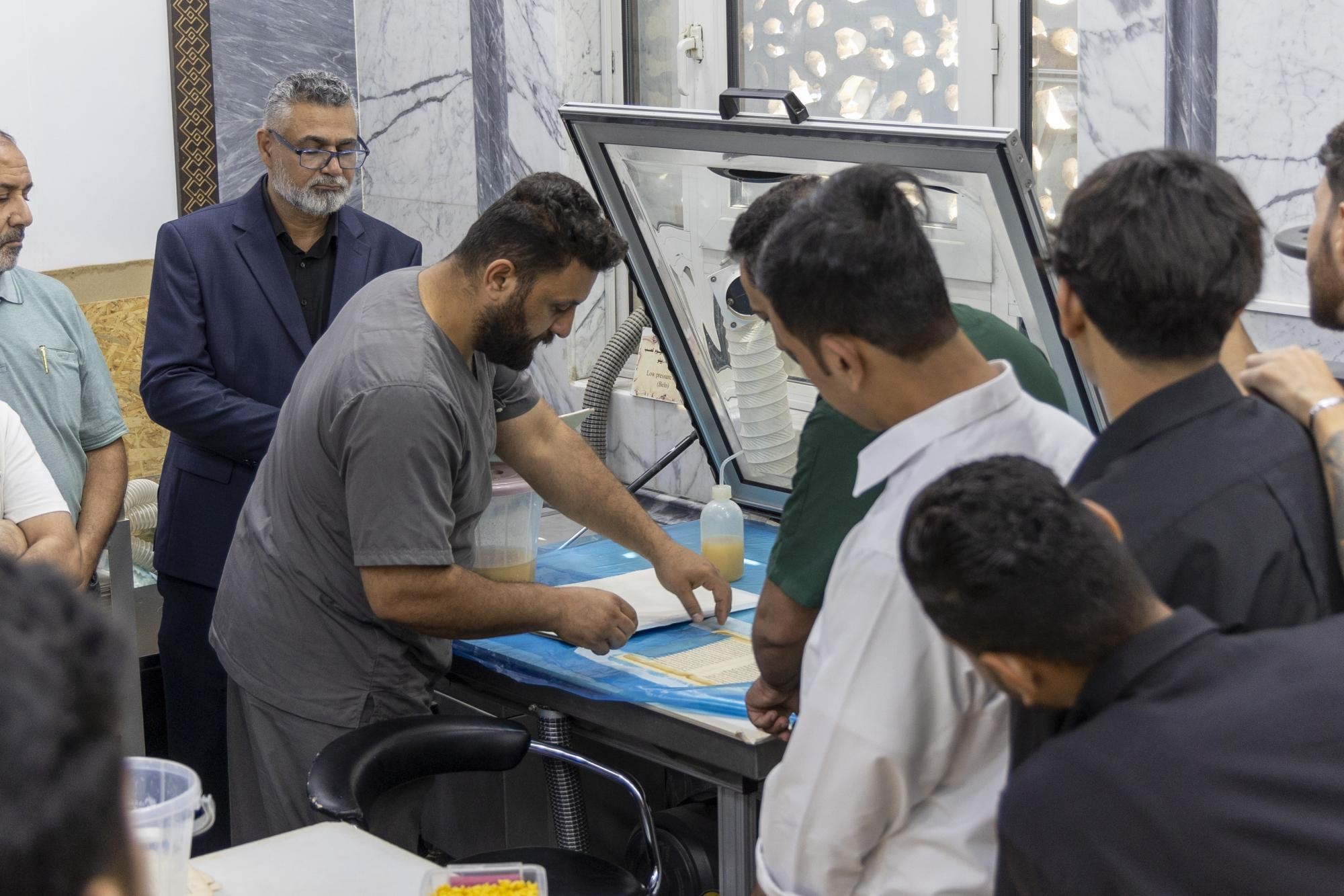 وأضاف: "تعرّف الوفد على المراحل التي يمرّ بها ترميم الكتاب المخطوط أو الوثيقة، إضافة إلى التعرّف على المختبر البيولوجي والأعمال التي يقوم بها، من فحص ألياف الأوراق وفحص جلد الأوراق وغيرها، فضلاً عن الاطّلاع على المختبر الكيميائي وما يحتويه من مواد داخلة في عملية ترميم وتجديد المخطوطات والوثائق".