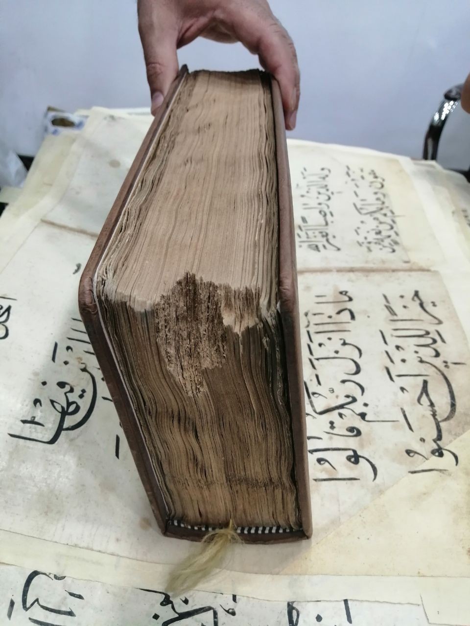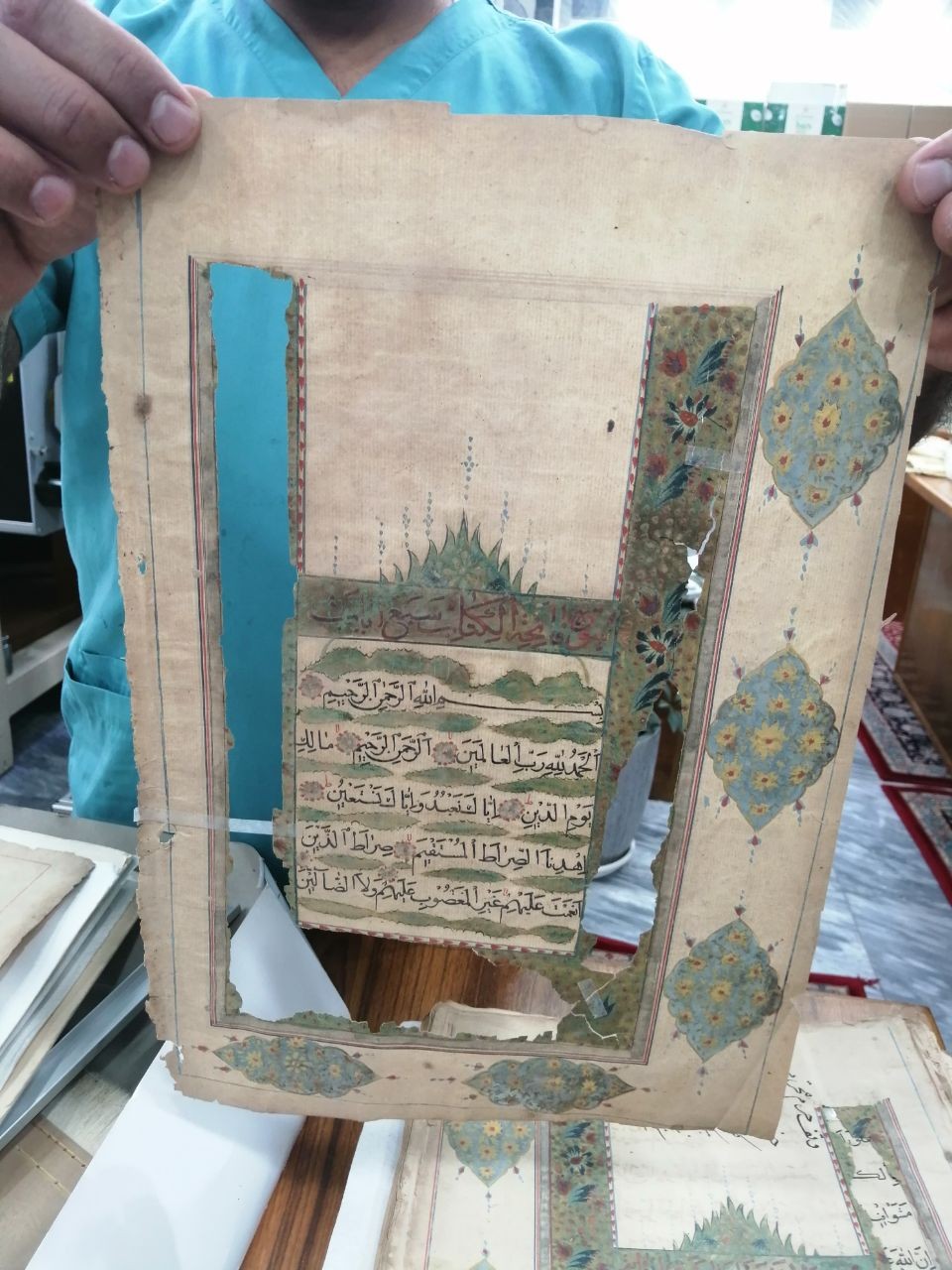 مركز الفضل لصيانة وحفظ التراث يشرع بترميم مجموعة مصاحف تعود إلى القرن الثالث عشر الهجري