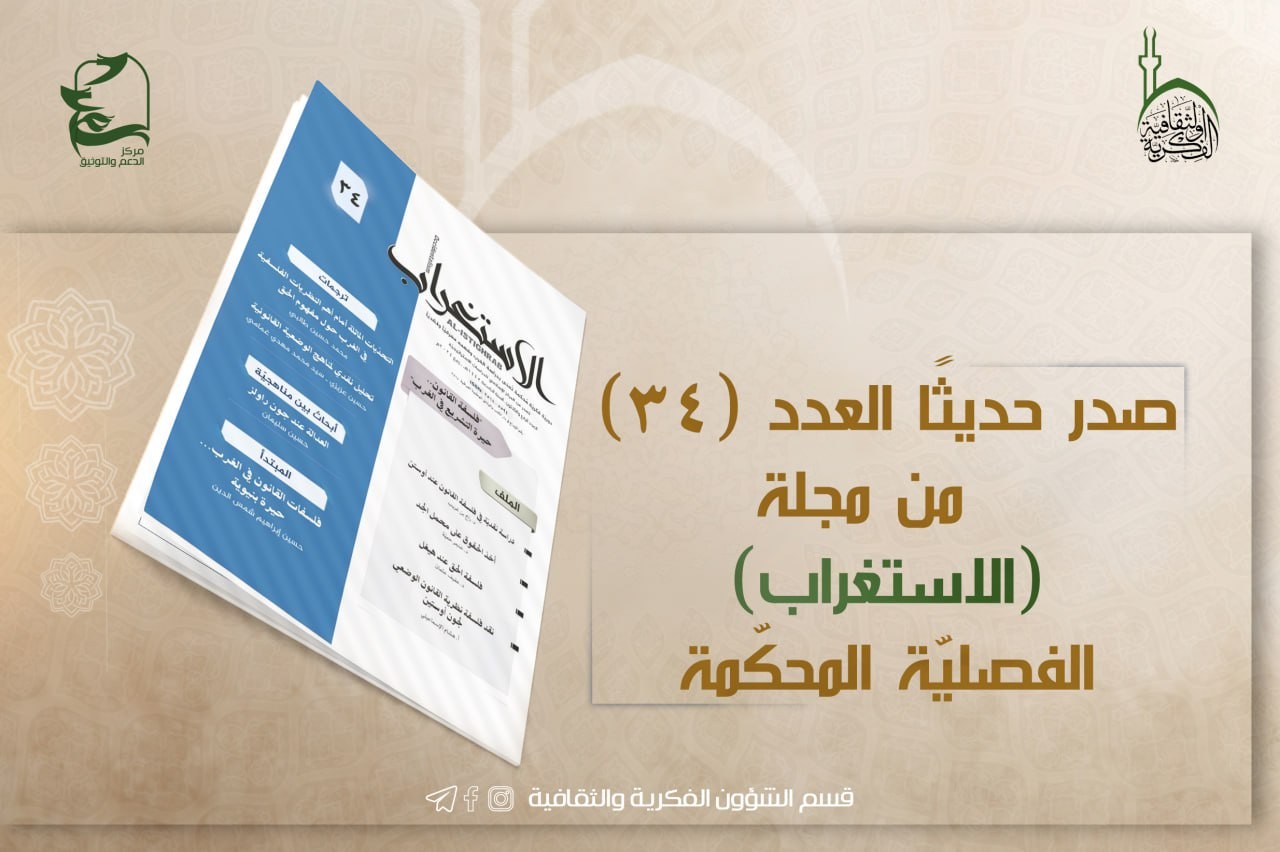 قسم الشؤون الفكريّة والثقافيّة يصدر العدد (34) من مجلّة الاستغراب الفصليّة