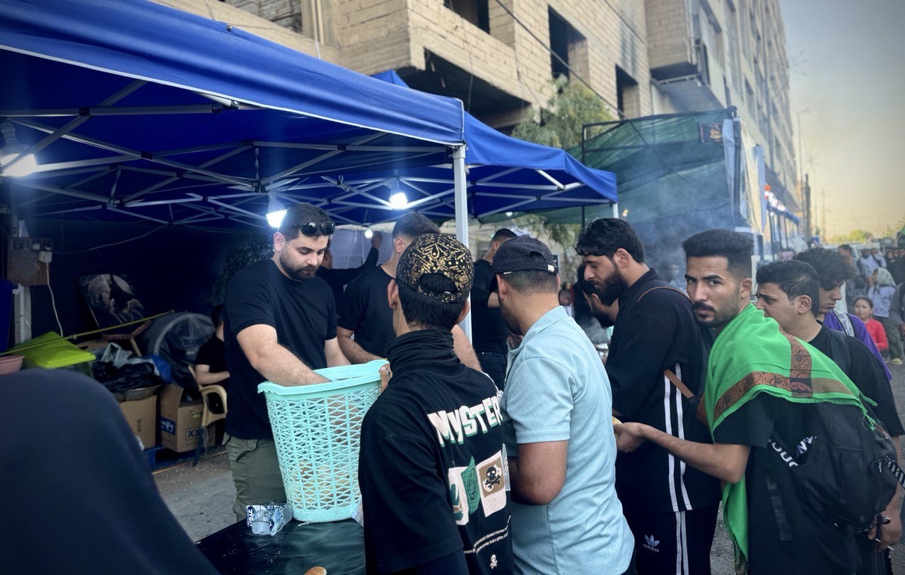 موكب عميد بني هاشم يباشر بتقديم الخدمات لزائري الأربعين