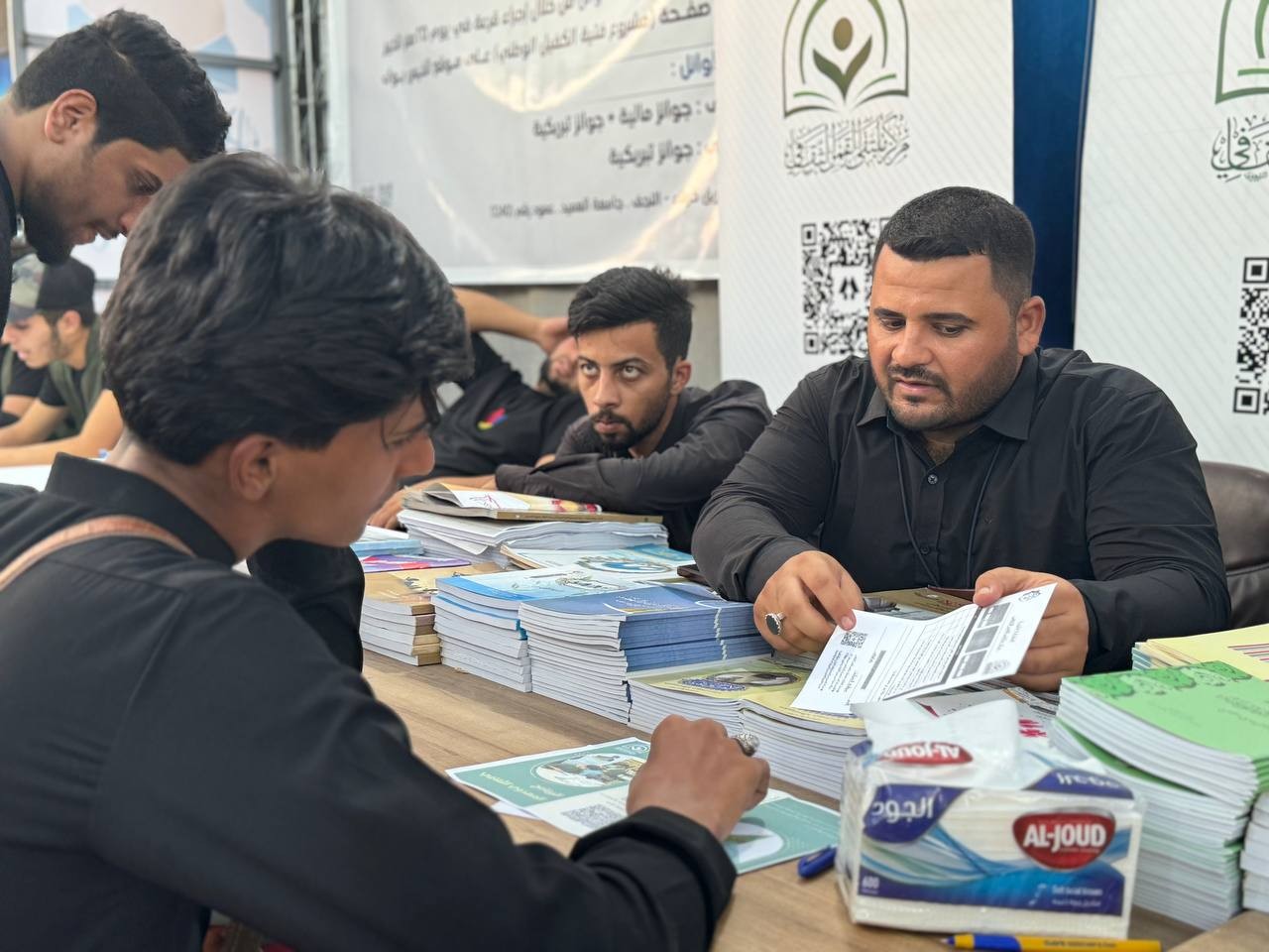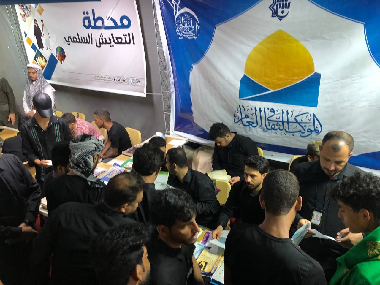 على محوري بابل والنجف.. مركز ملتقى القمر يواصل تقديم خدمات فكرية وثقافية للزائرين