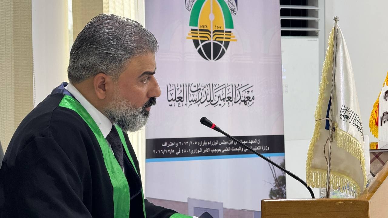 ناقش باحث من قسم الشؤون الفكرية والثقافية رسالة ماجستير في معهد العلمين للدراسات العليا في النجف الأشرف/ قسم العلوم السياسية، والتي توسّمت بـ "دور العتبة العبّاسيّة المقدّسة في تحقيق أهداف التنمية المستدامة في العراق بعد عام 2017م"، بحضور وفد من العتبة المقدسة يتقدّمه عدد من رؤساء أقسامها.