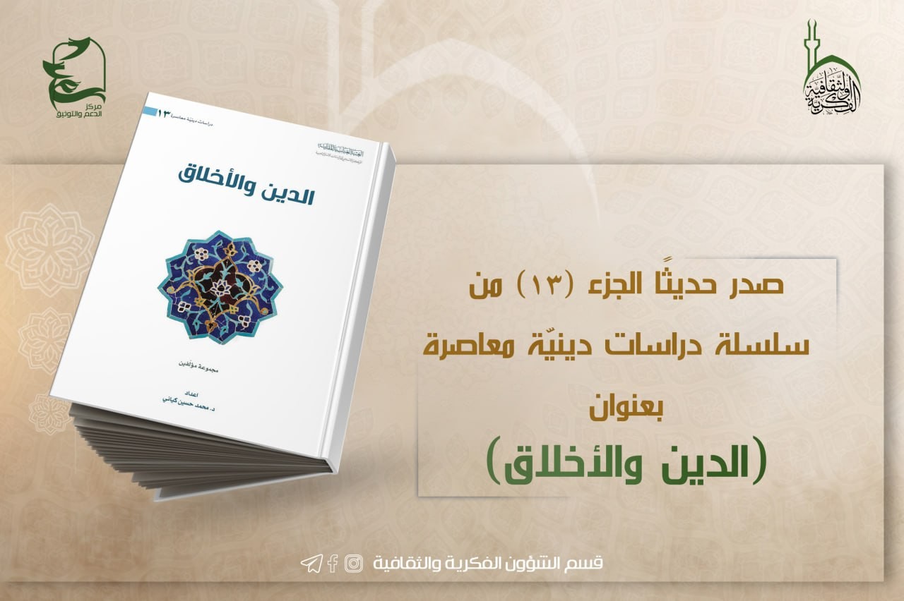 صدر عن المركز الاسلامي للدراسات الاستراتيجية التابع لقسم الشؤون الفكرية والثقافية في العتبة العباسية المقدسة الجزء الثالث عشر من سلسلة دراسات دينيّة معاصرة بعنوان: (الدين والأخلاق)، والذي يتضمن مجموعة من الدراسات حول الأخلاق وما ذكر عنها في القرآن الكريم وسيرة أهل البيت (عليهم السلام)، من تأليف عدد من الباحثين.