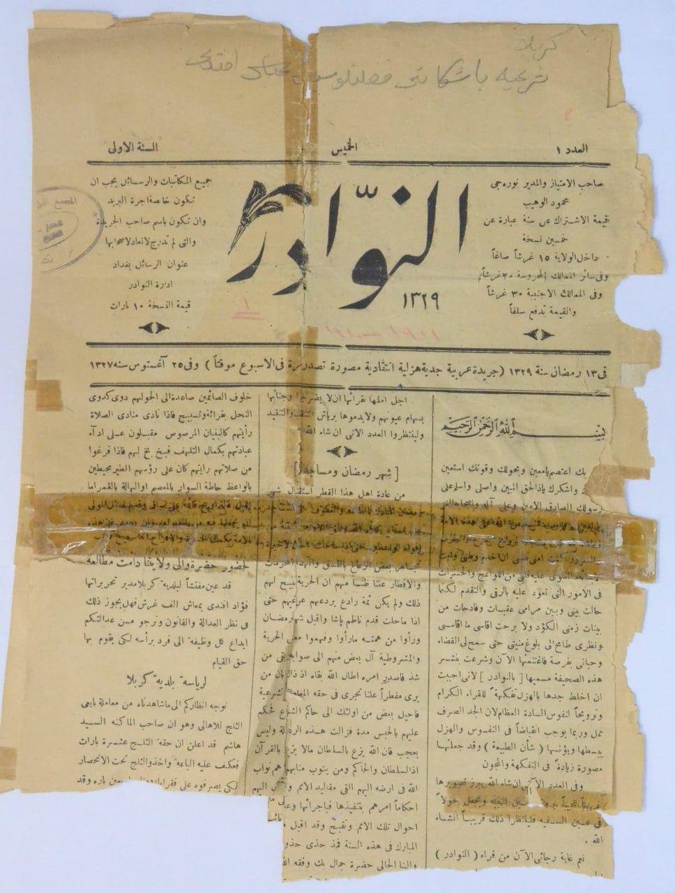 استكمالاً لمشروع حفظ التراث الثقافي المعرفي العراقي، استلم قسم الشؤون الفكرية والثقافية في العتبة العباسية المقدسة الأعداد الأولى لمجموعة من الصحف القديمة التي كانت تصدر في العراق قبل اكثر من قرن.