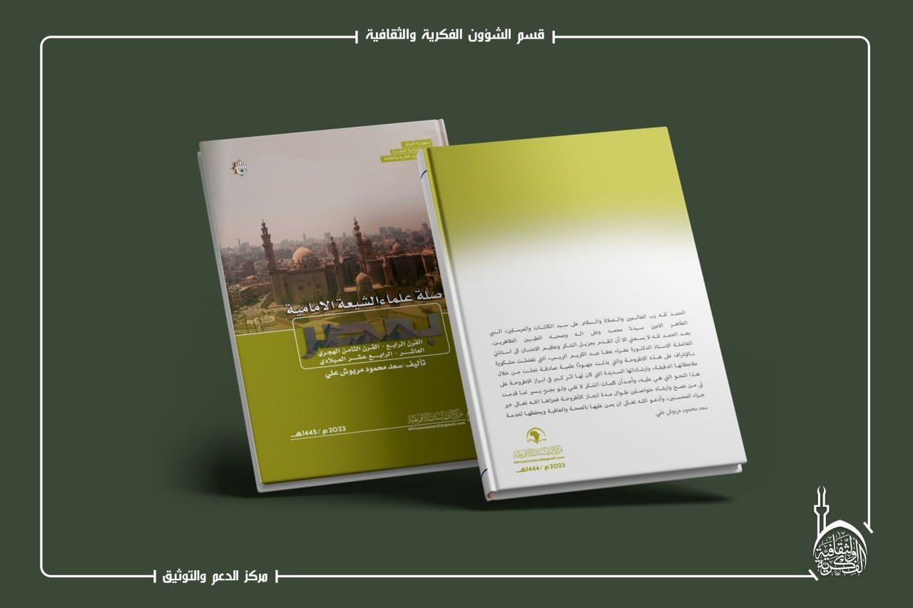 صدر حديثًا عن قسم الشؤون الفكرية والثقافية في العتبة العباسية المقدسة كتاب بعنوان "صلة علماء الأمامية بمصر (القرن الرابع – القرن الثامن الهجري)".