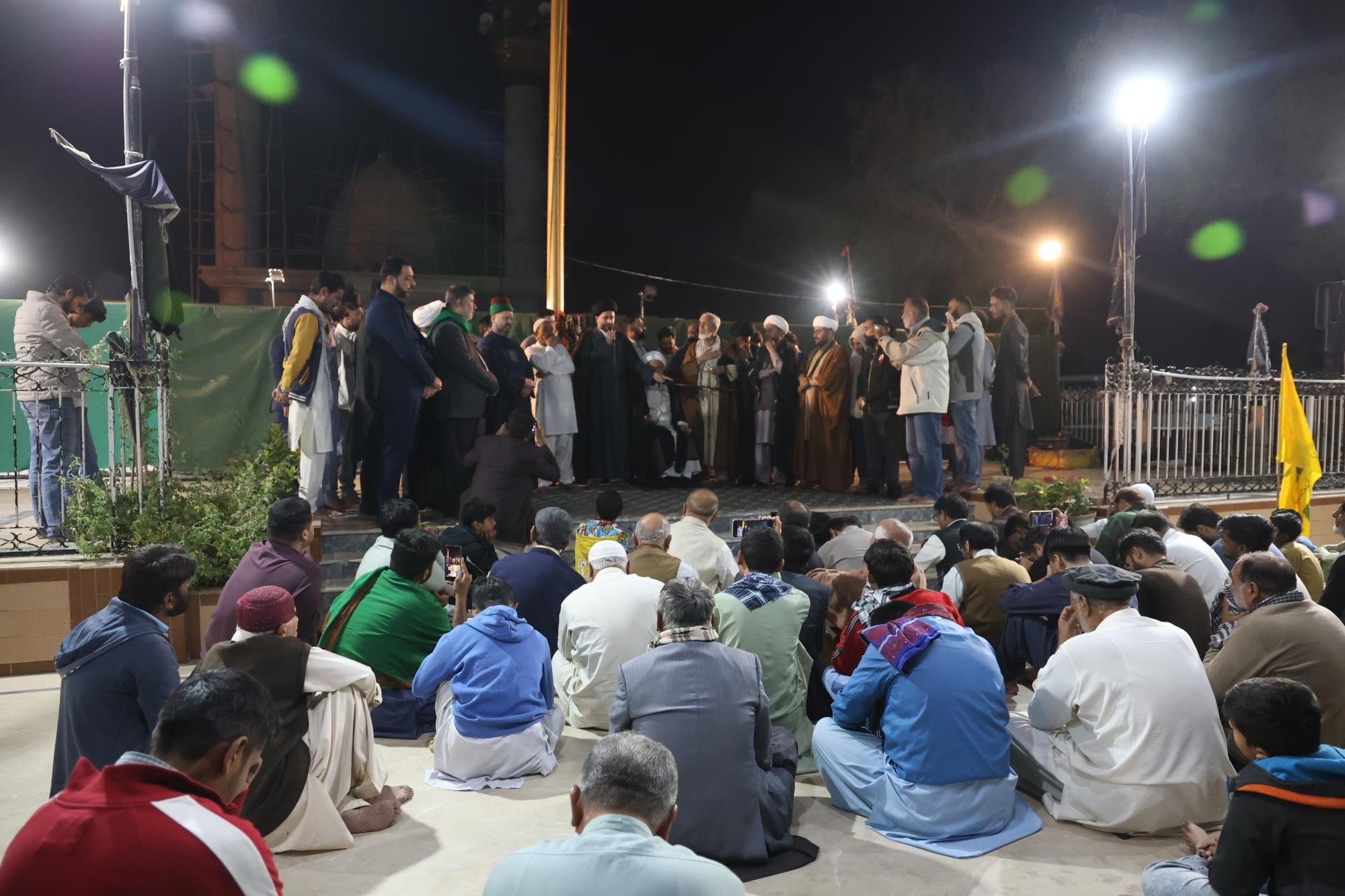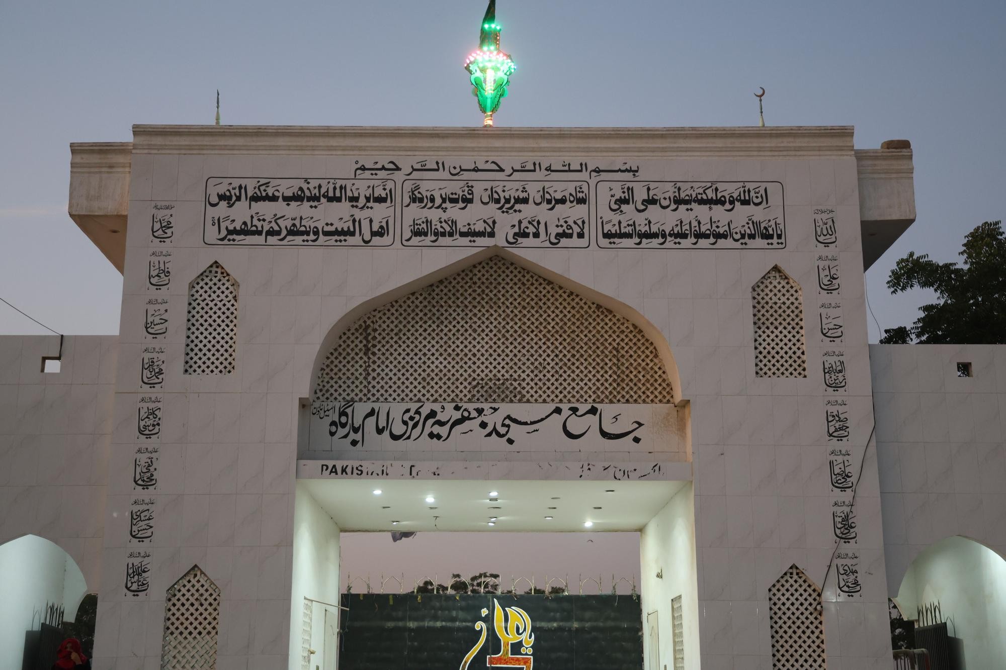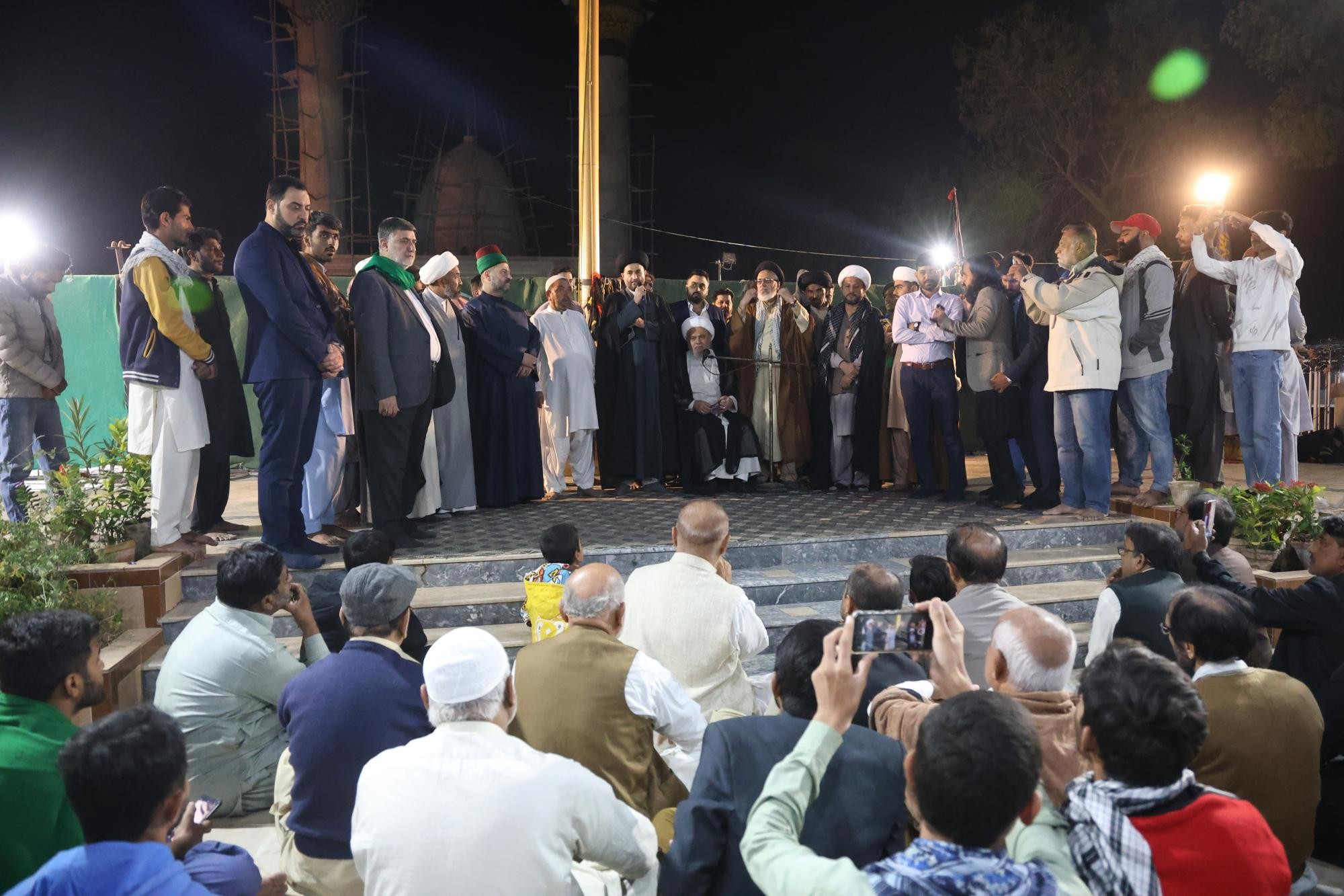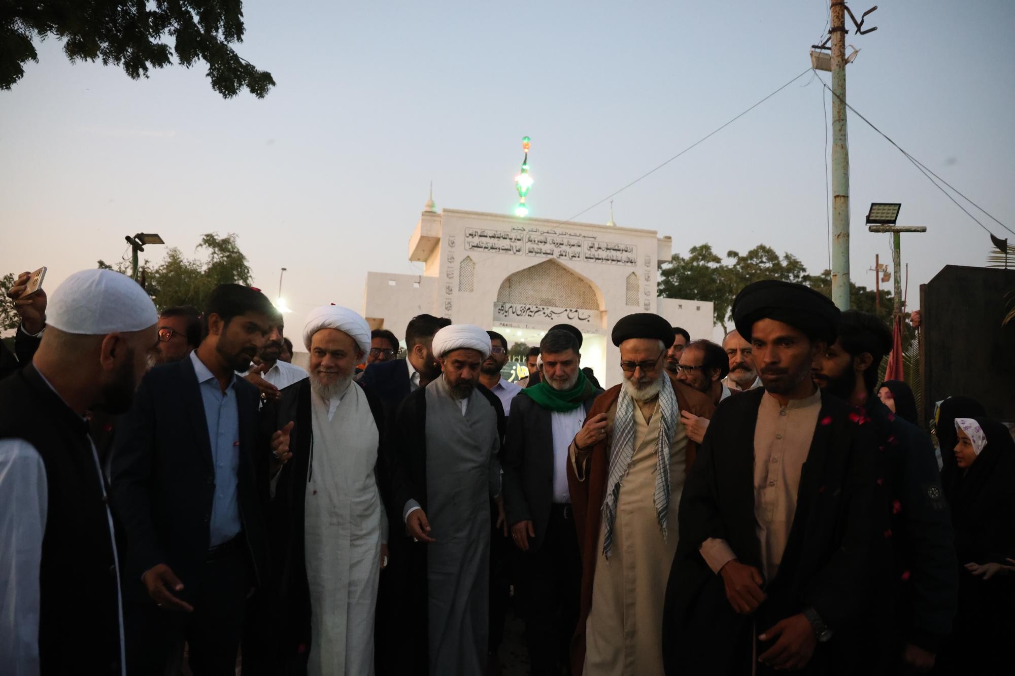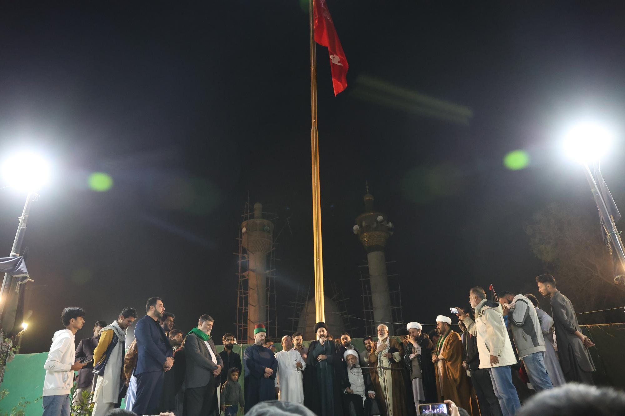 رفع وفد العتبة العبّاسية المقدّسة راية أبي الفضل العباس (عليه السلام)، وسط مسجد الجعفرية في گلشن حديد بمدينة كراتشي الباكستانية، بحضور جمعٍ من المؤمنين.