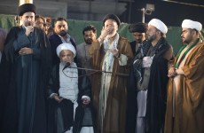 وفد العتبة العبّاسيّة المقدّسة يرفع راية أبي الفضل العباس (عليه السلام) وسط مسجد الجعفرية في باكستان