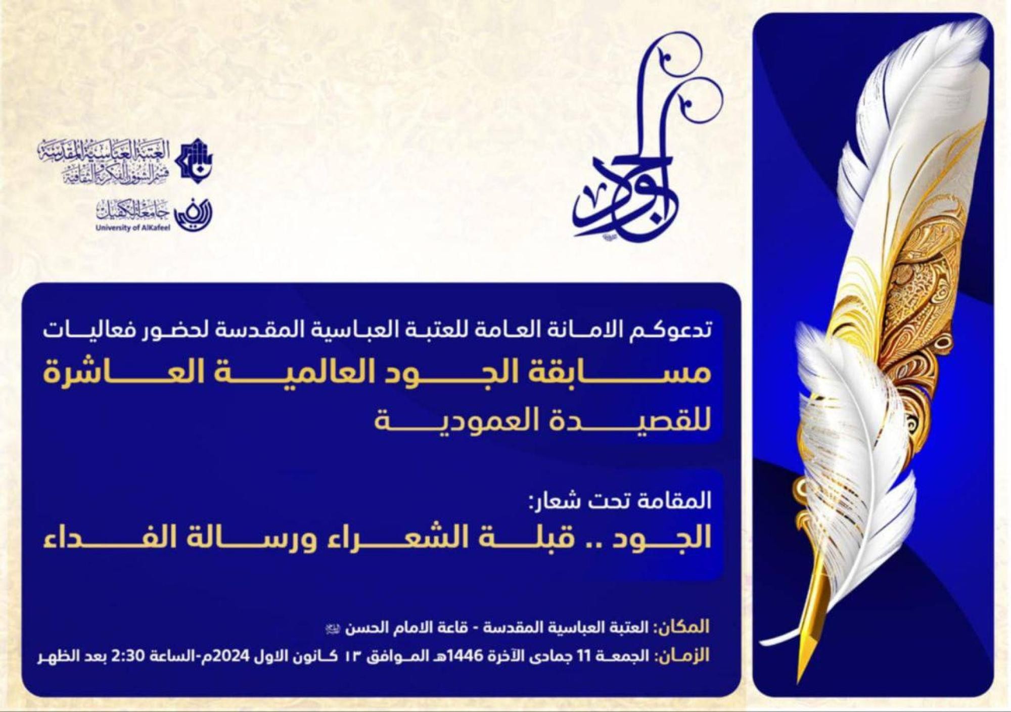 وتُقام المسابقة التي ينظّمها قسم الشؤون الفكريّة والثقافيّة في العتبة المقدّسة بالتعاون مع جامعة الكفيل، تحت شعار: (الجود.. قبلة الشعراء ورسالة الفداء).