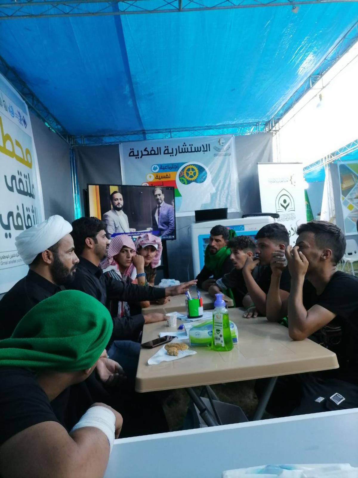 الثاني: محطّة استشاريّة فكريّة نفسيّة أسريّة عقائديّة فكريّة ثقافيّة، حيث تتمّ من خلالها الإجابة عن أيّ سؤالٍ يدور في مخيّلة الزائر، أو ما علق في ذهنه من إشكالاتٍ خلال مسيرته، وتكون الإجابة عنها بطريقةٍ واضحة ومبسّطة بعيدة عن التعقيد، ويمتدّ عمل هذه المحطّة على طريق الزائرين كذلك وفي طريق سيرهم، من خلال خلق حراكٍ فكريّ يهدف لذات الغرض".