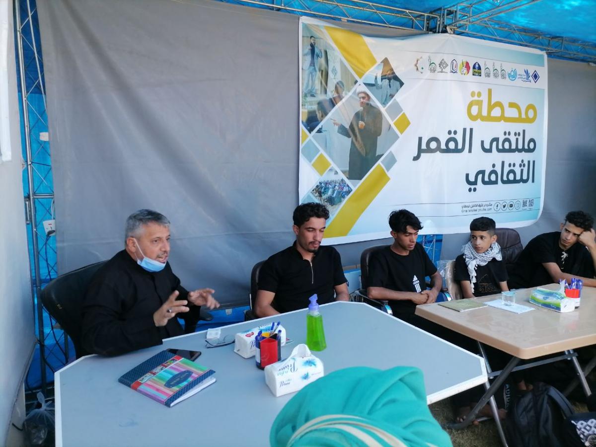 قدّم مركزُ مُلتقى القمر الثقافيّ التابع لقسم الشؤون الفكريّة والثقافيّة في العتبة العبّاسية المقدّسة، خدماتٍ عديدة لزائري الأربعين، منها ما شرع به خلال هذه الزيارة المباركة وبما يسهم في تثقيف الزائر الشاب، وجعل مسيرته ذا فائدةٍ وبما ينمّي قدراته وطاقته عبر نافذتَيْن، وعلى شكل أجنحةٍ ضمن محطّة الكفيل الثقافيّة بموسمها الثاني، المقامة على طريق الزائرين من محور النجف الأشرف باتّجاه كربلاء.