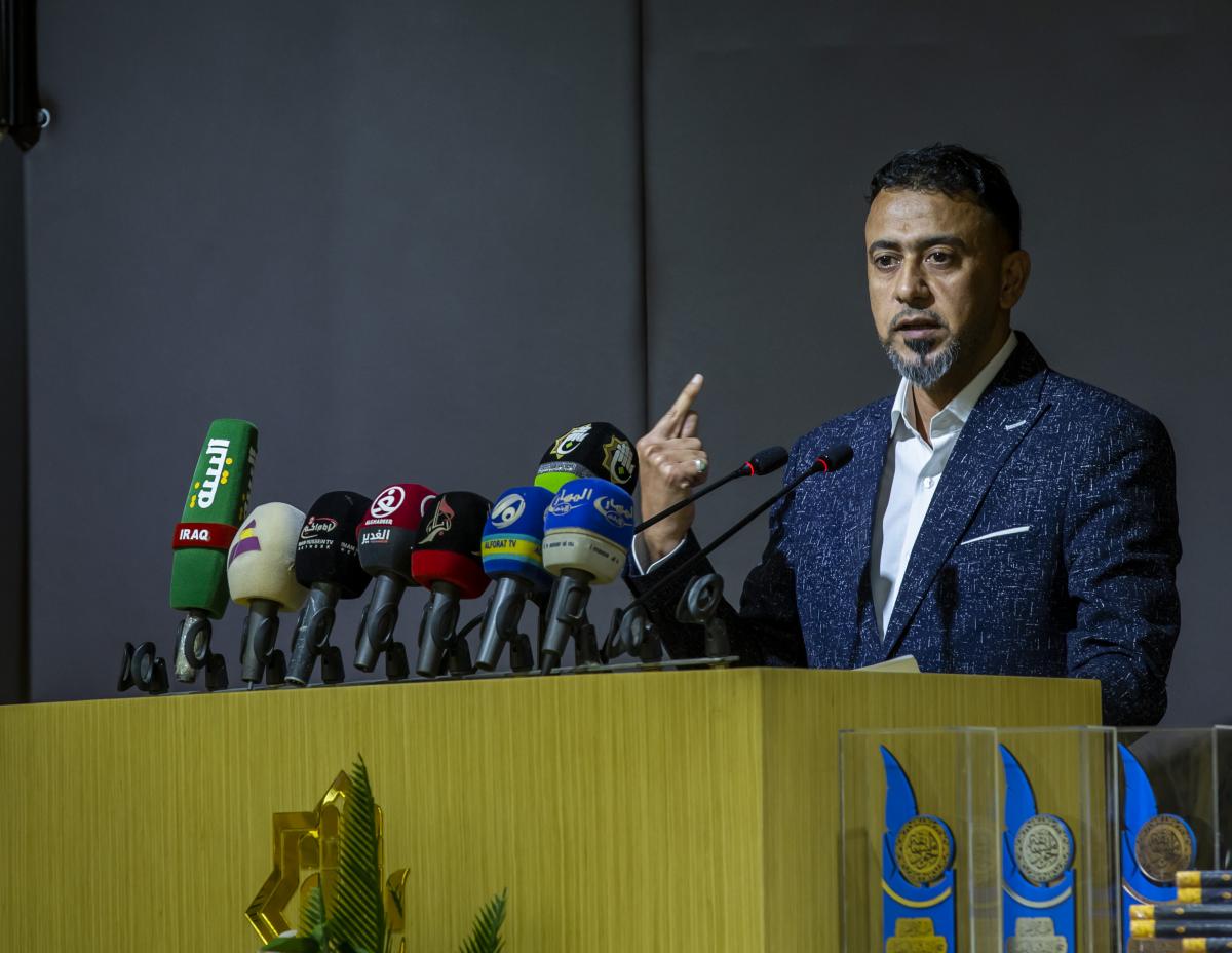 <p dir="RTL" style="margin-left:0in; margin-right:0in; text-align:right"><span style="font-size:11pt"><span style="font-family:Calibri,"sans-serif""><strong><span style="font-size:14.0pt"><span style="font-family:"Sakkal Majalla"">"دأبت الأمانة العامة للعتبة العباسية المقدسة على إقامة مسابقة الجود للشعر العمودي العالمية، وكانت النسخ الستة الأولى متتالية، ولكن لظروف طارئة مرت على البلاد من اجتياح عصابات داعش لبعض المدن، فضلًا عمّا ابتلي به العالم أجمع في العامين الأخيرين من وباء كورونا، توقفت المسابقة، ولكن - ولله الحمد - تمّت إعادتها في النسخة السابعة من خلال قسم الشؤون الفكرية والثقافية بالتعاون جامعة الكفيل".</span></span></strong></span></span></p>