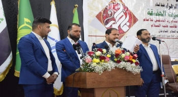 <p dir="RTL" style="margin-left:0in; margin-right:0in; text-align:right"><span style="font-size:11pt"><span style="font-family:Calibri,"sans-serif""><strong><span style="font-size:14.0pt"><span style="font-family:"Sakkal Majalla"">ثمّ ألقت الفرقةُ الإنشاديّة في العتبة الحسينيّة أنشودةً بحقّ الزهراء(عليها السلام)، وأعقبت كلمات الافتتاح محاضرةٌ علميّة عن حياة السيّدة الزهراء(عليها السلام)، حاضَرَ فيها السيّد الدكتور محمد علي بحر العلوم، الأستاذُ في الحوزة العلميّة ومديرُ معهد العلمَيْن في النجف الأشرف، ثمّ أُجريتْ مناقشاتُ البحوث التي توزّعت على ثمان جلساتٍ، وفي نهايتها تمّ توزيع الشهادات والهدايا على الباحثين.</span></span></strong></span></span></p>