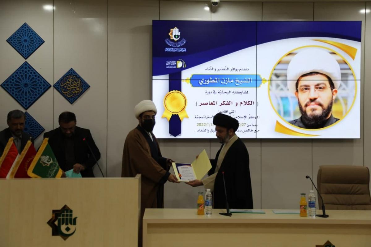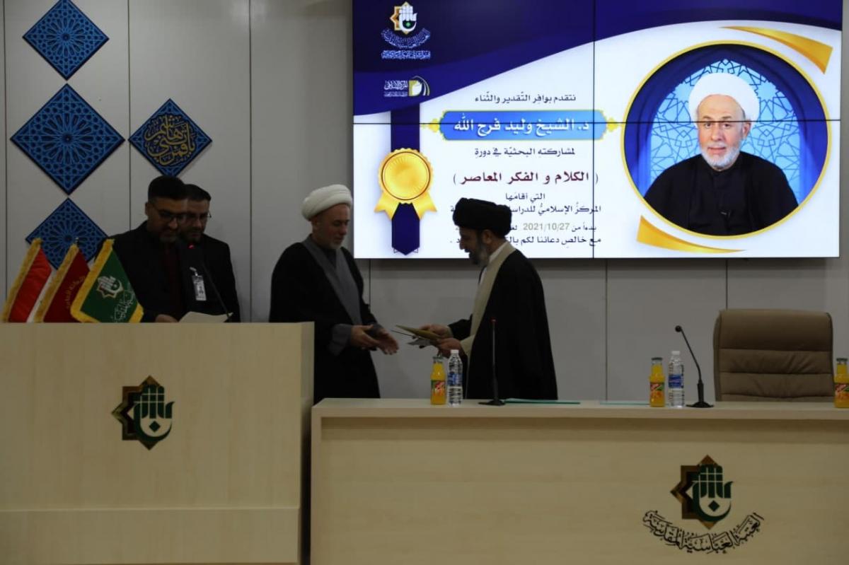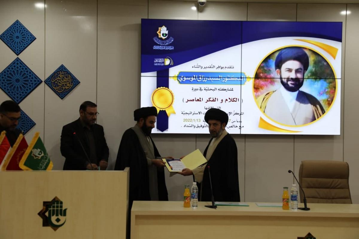 <p dir="RTL" style="margin-left:0in; margin-right:0in; text-align:right"><span style="font-size:11pt"><span style="font-family:Calibri,"sans-serif""><strong><span style="font-size:14.0pt"><span style="font-family:"Sakkal Majalla"">نظّم المركزُ الإسلاميُّ للدّراسات الاستراتيجيّة التابع لقسم الشؤون الفكريّة والثقافيّة في العتبة العبّاسية المقدّسة، حفلاً لتكريم أساتذة المرحلة الأولى من دورته العلميّة الفكريّة والتخصّصية في الكلام والفكر المُعاصِر، وذلك تثميناً لما بذلوه من جهودٍ خلال فترة إقامتها ولما حقّقته من نتائج طيّبة كانت مرتكزاً لمرحلتها الثانية.</span></span></strong></span></span></p>