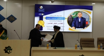 <p dir="RTL" style="margin-left:0in; margin-right:0in; text-align:right"><span style="font-size:11pt"><span style="font-family:Calibri,"sans-serif""><strong><span style="font-size:14.0pt"><span style="font-family:"Sakkal Majalla"">فعّاليةُ التكريم أُقِيمت على قاعة الشيخ الأنصاري(رضي الله عنه) في مجمّع المرتضى(عليه السلام) الثقافيّ التابع للعتبة العبّاسية المقدّسة في محافظة النجف الأشرف، بحضور عضو مجلس إدارتها السيّد ليث الموسويّ ورئيس قسم الشؤون الفكريّة والثقافيّة السيّد عقيل عبد الحسين الياسري، إضافةً إلى جمعٍ كبير من العلماء الأعلام والشخصيّات الدينيّة من الوسط الحوزويّ والأكاديميّ.</span></span></strong></span></span></p>
