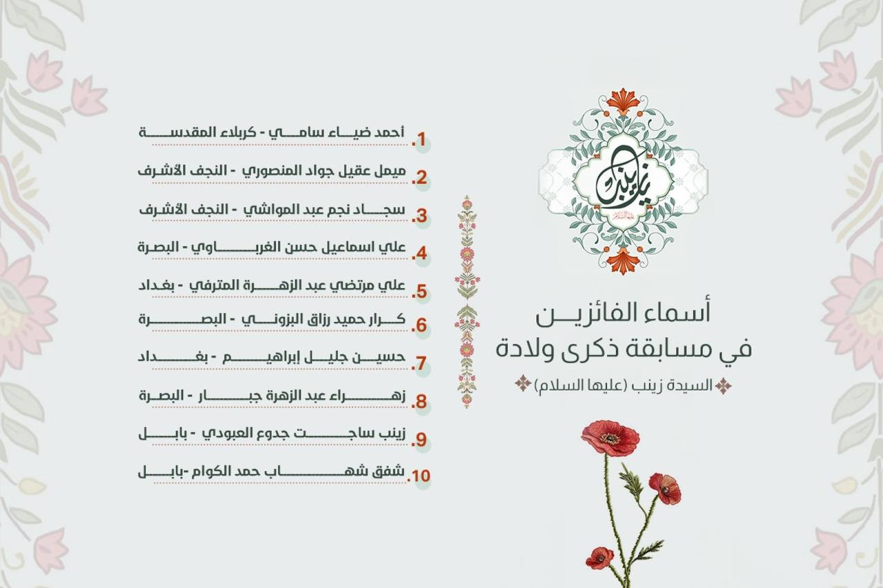 العتبة العباسية المقدسة تعلن عن أسماء الفائزين في مسابقة ولادة السيدة زينب (عليها السلام)