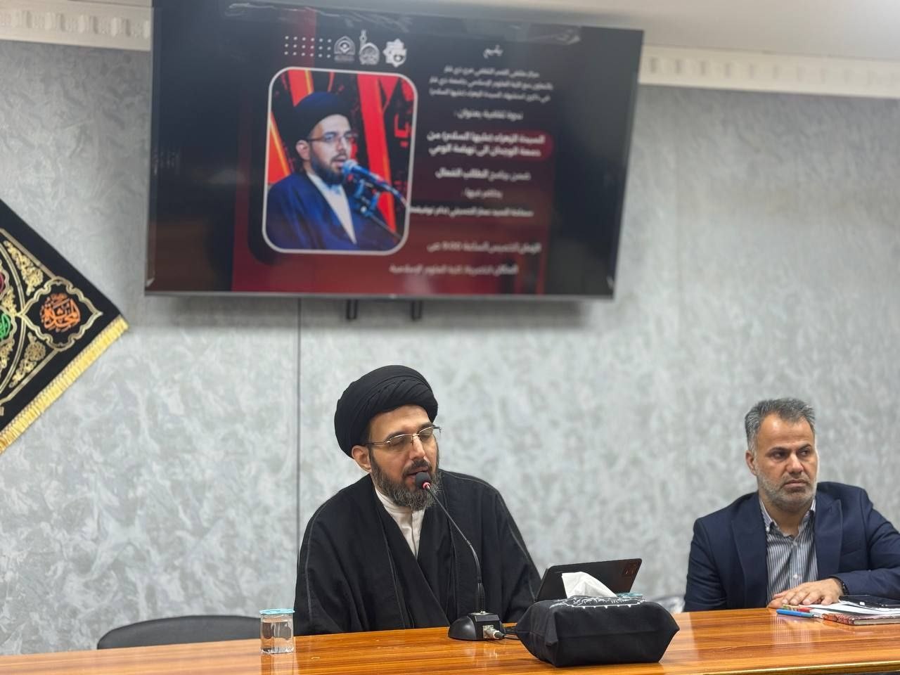 وقال مدير المركز، الشيخ حارث الداحي: "إن الندوة جاءت بعنوان (السيدة الزهراء عليها السلام من دمعة الوجدان إلى نهضة الوعي)، قدّمها سماحة السيد عمار الحسيني، وتناول فيها الأبعاد الفكرية والإنسانية في سيرة الزهراء (عليها السلام) ودورها في ترسيخ الوعي الرسالي في الأمة".