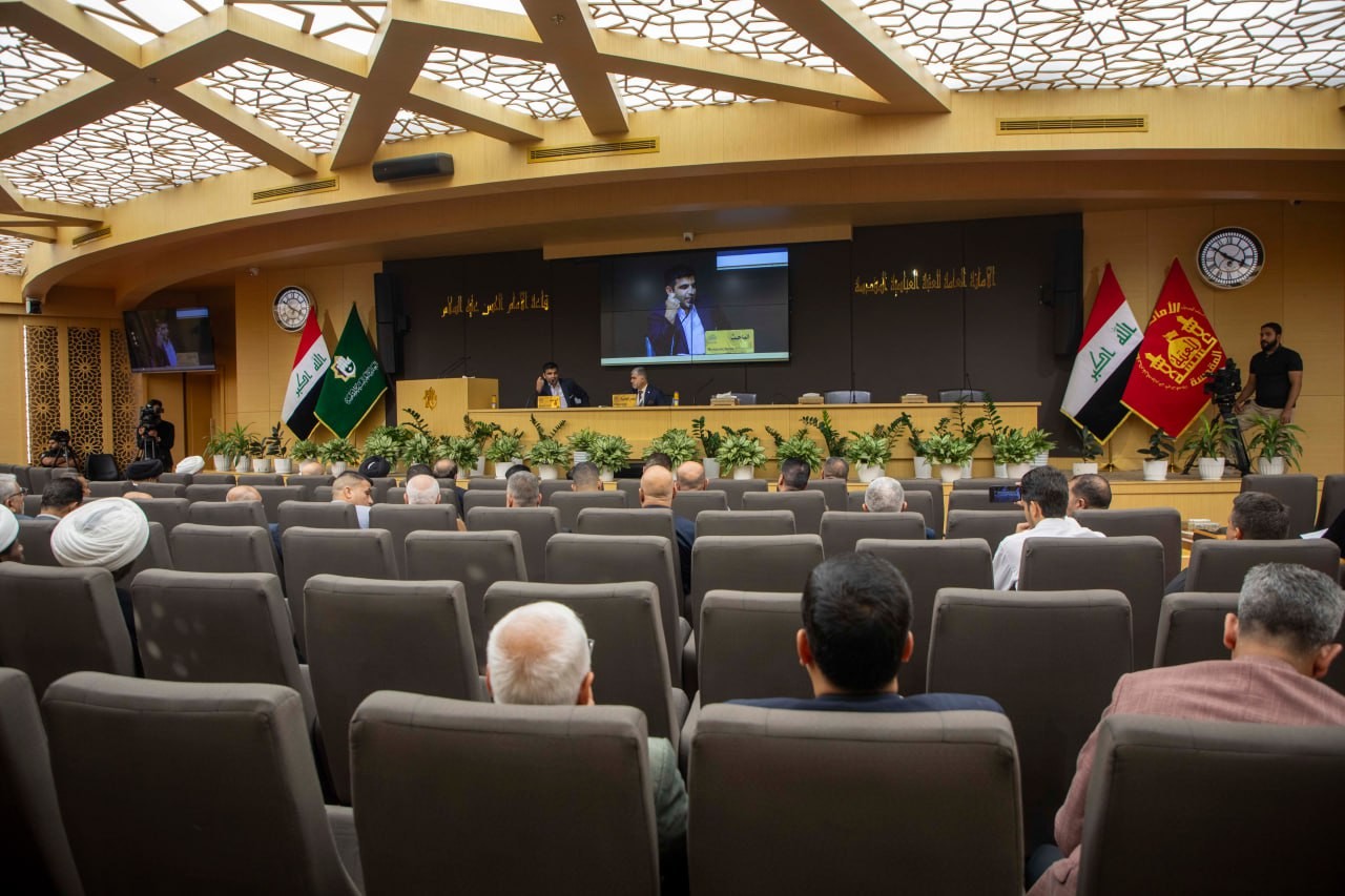 أما فعاليات اليوم الثاني التي احتضنتها جامعة العميد، فقد استُهلّت بتلاوةٍ قرآنيةٍ عطرةٍ بصوت القارئ ليث العبيدي، أعقبها ترديدُ النشيد الوطني العراقي ونشيد الإباء الخاص بالعتبة المقدسة، ثم كلمةٌ لرئيس الجامعة الدكتور جودت الجشعمي.