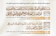 كما وجّهت العتبة دعوةً لحضور الجلسة البحثية الخاصة بالسيدة أمّ البنين (عليها السلام)، والمقامة تحت شعار: "أمّ البنين (عليها السلام) قصّة إيثار".