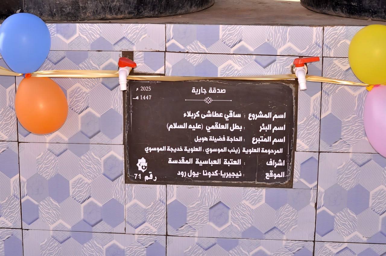 أفتتح قسم الشؤون الفكرية والثقافية في العتبة العباسية المقدسة البئرَ رقم (71) في ولاية كادونا بدولة نيجيريا، وذلك ضمن برنامج ساقي عطاشى كربلاء.