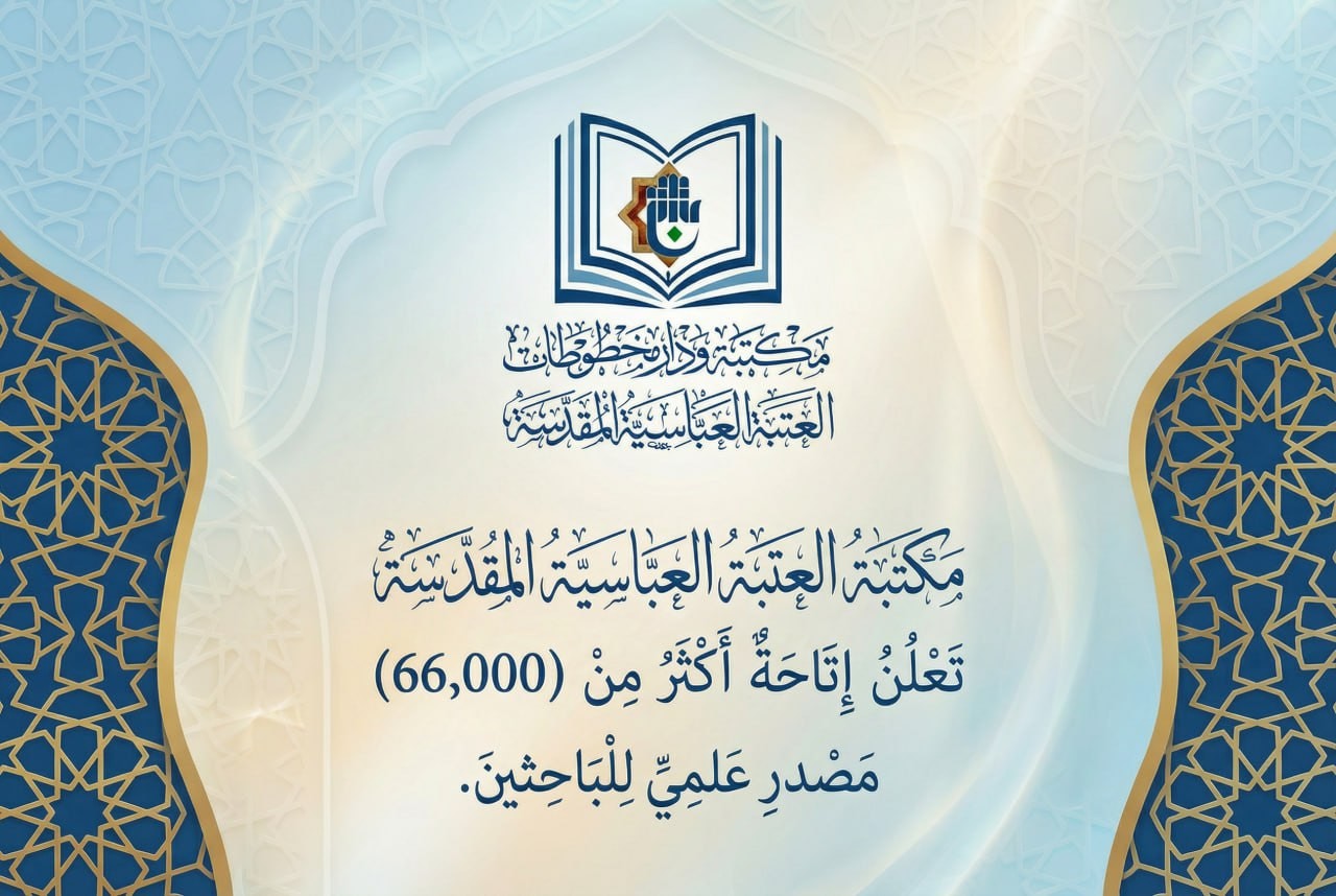 أعلنت مكتبة ودار المخطوطات العتبة العباسية المقدسة التابعة لقسم الشؤون الفكرية والثقافية عن إتاحة أكثر من (66,000) مصدر علمي ورقي في مختلف المجالات والاختصاصات العلمية والإنسانية للقرّاء والباحثين.