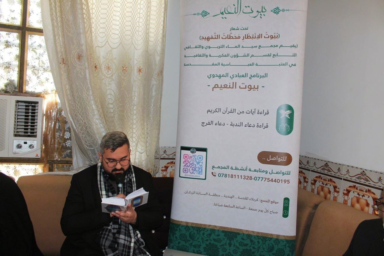 وقال مدير مجمّع سيد الماء التربوي والثقافي، السيد مهند البراك: "أقام المجمّع برنامجًا عباديًّا ضمن مشروع بيوت النعيم في إحدى مناطق قضاء الكفل التابعة لمحافظة بابل".