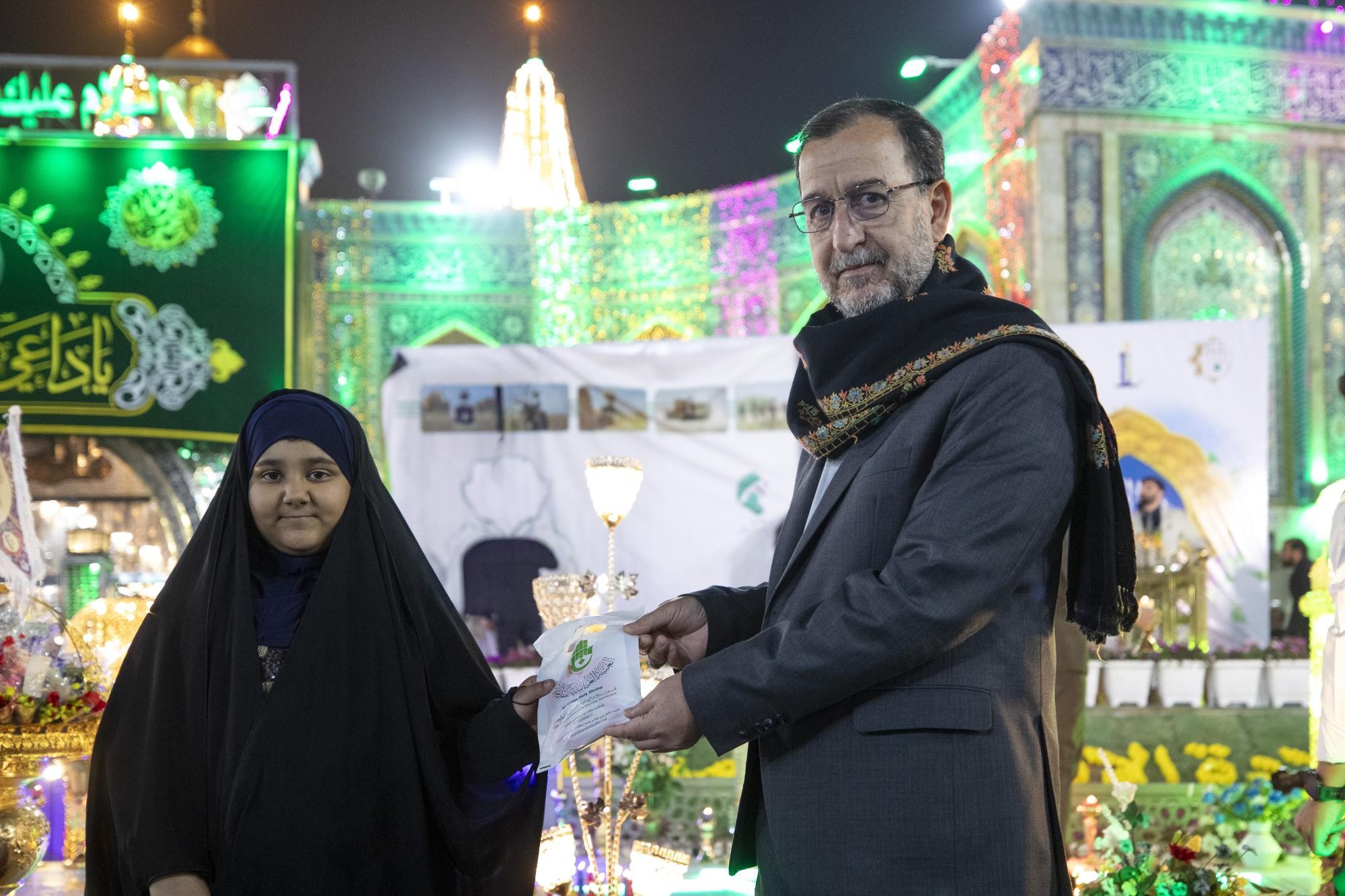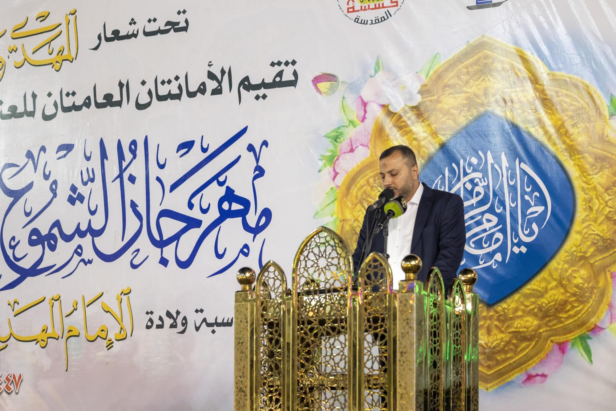 وأُقِيم المهرجانُ في باب القبلة لمرقد أبي الفضل العباس (عليه السلام) تحت شعار: (المهديّ وعدٌ غيرُ مكذوب)، وبحضور مسؤولي العتبتَينِ المقدّستَينِ وشخصياتٍ دينية ورسمية وجمعٍ غفيرٍ من الزائرين.