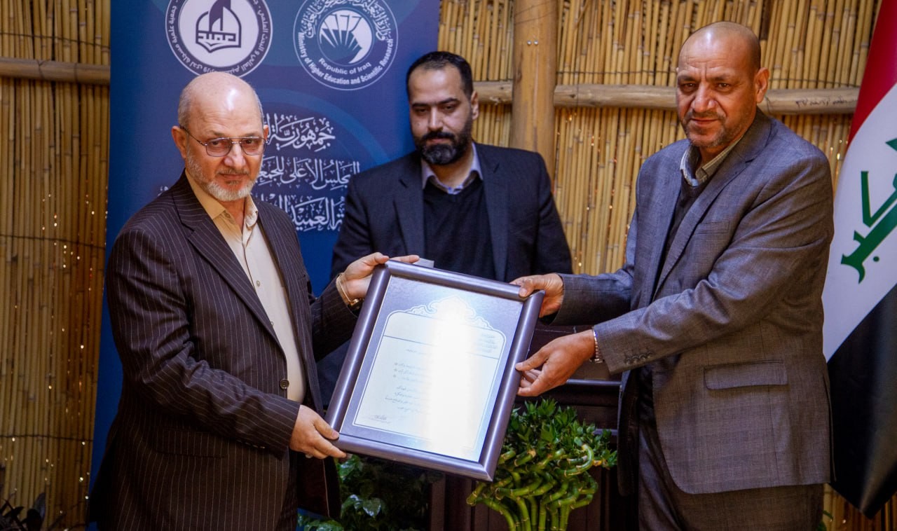 وفي ختام الحفل، قدَّم رئيس الجمعيَّة الدكتور سرحان جفات سلمان درع جمعيَّة العميد إلى الدكتور رياض طارق العميدي، تقديرًا لجهوده المخلصة وما قدَّمه من عملٍ نوعيٍّ وعطاءٍ متميِّز، وسط أجواء اتَّسمت بالتقدير والامتنان، وعكست مكانته في قلوب الجميع.