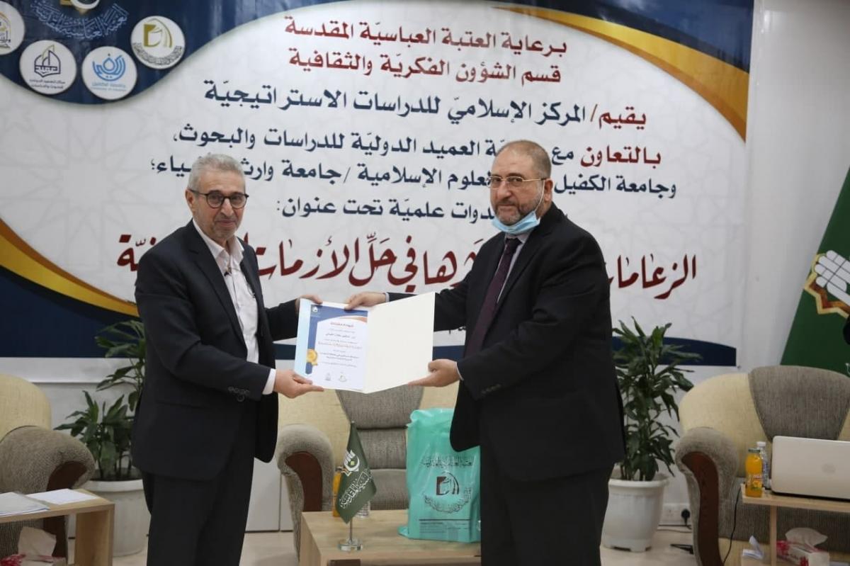 <p><span dir="RTL" lang="AR-SA" style="font-size:18.0pt"><span style="font-family:"Times New Roman","serif"">اختتم المركزُ الإسلاميّ للدّراسات الاستراتيجيّة التابع لقسم الشؤون الفكريّة والثقافيّة في العتبة العبّاسية المقدّسة، سلسلة ندواته المشتركة الموسومة بـ(الزّعامات الدينيّة وأثرها في حلِّ الأزمات الإنسانيّة)، بالتعاون مع كلّية العلوم الإسلاميّة في جامعة وارث الأنبياء(عليه السلام)</span></span><span style="font-size:18.0pt"><span style="font-family:"Times New Roman","serif"">.<br />