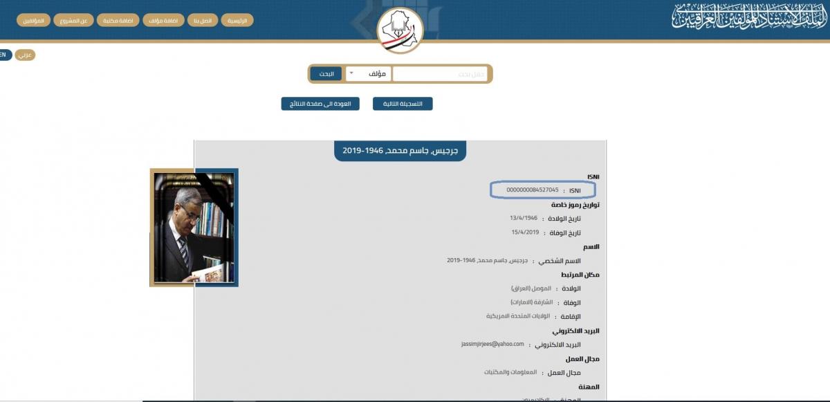 يُذكر أنّ مشروع الملفّ الاستناديّ للمؤلّفين العراقيّين يُنفّذ في العراق لأوّل مرّة، ويُعدُّ من أهمّ الأدوات التي تضبط وتقنّن أسماء الأشخاص في فهارس المكتبات، ضمن قائمة استنادٍ عراقيّة تُعنى بالمؤلّفين العراقيّين، لتوحيد صياغة اسم المؤلِّف العراقيّ وتوفير قاعدة بياناتٍ استناديّة، إضافةً إلى العناوين وأماكن تواجدها في المكتبات العراقيّة، ممّا يسهّل على الباحث عمليّة البحث والاسترجاع.