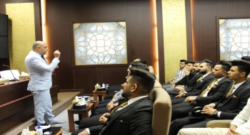 <p dir="RTL" style="margin-left:0in; margin-right:0in; text-align:justify"><span style="font-size:11pt"><span style="font-family:Calibri,"sans-serif""><span style="font-size:16.5pt"><span style="background-color:white"><span style="font-family:"Arial","sans-serif""><span style="color:#4d4d4d">وقال مسؤولُ المركز الشيخ حارث الداحي: "استضافةُ هذه الثلّة الطيّبة من الشباب الميسانيّ، جاءت نتاجاً ومحصّلةً للزيارات والجولات الميدانيّة التي قُمنا بها لهذه المحافظة، ولأجل تعزيز الصّلة وزيادة رقعة الفائدة استضفنا هذه المجموعة، بالتنسيق مع ممثّلي المُلتقى لمساعدتهم في تطوير مهاراتهم الفكريّة والثقافيّة، لخدمة مجتمعهم الميسانيّ".</span></span></span></span></span></span></p>