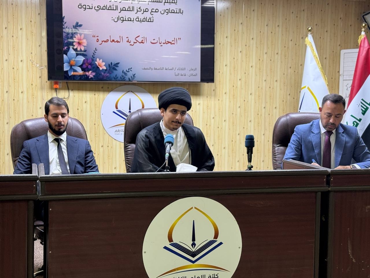 نظّم مركز ملتقى القمر الثقافي، التابع لقسم الشؤون الفكرية والثقافية في العتبة العباسية المقدسة، ندوةً ثقافيةً بعنوان «التحدّيات الفكرية المعاصرة»، احتضنتها جامعة الإمام الكاظم (عليه السلام) في محافظة ذي قار.