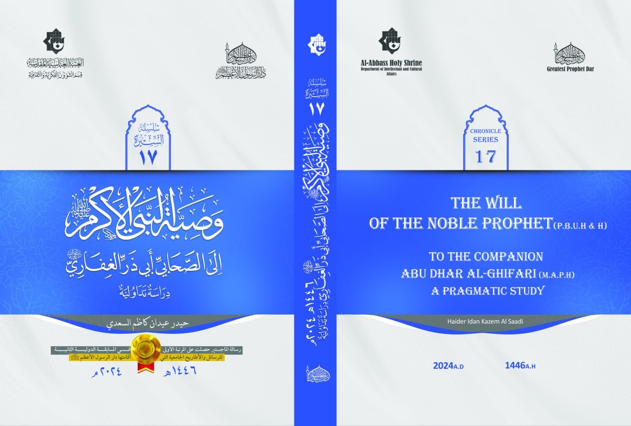 وقال رئيس الدار، الدكتور عادل نذير: "إن هذا الاصدار يُعد في الاصل رسالة ماجستير حازت على المرتبة الاولى في المسابقة الدولية الثانية للرسائل والاطاريح الجامعية التي اقامتها دار الرسول الأعظم (صلى الله عليه وآله)، لما تضمنته من معالجة علمية متميزة للوصايا النبوية من منظور تداولي".