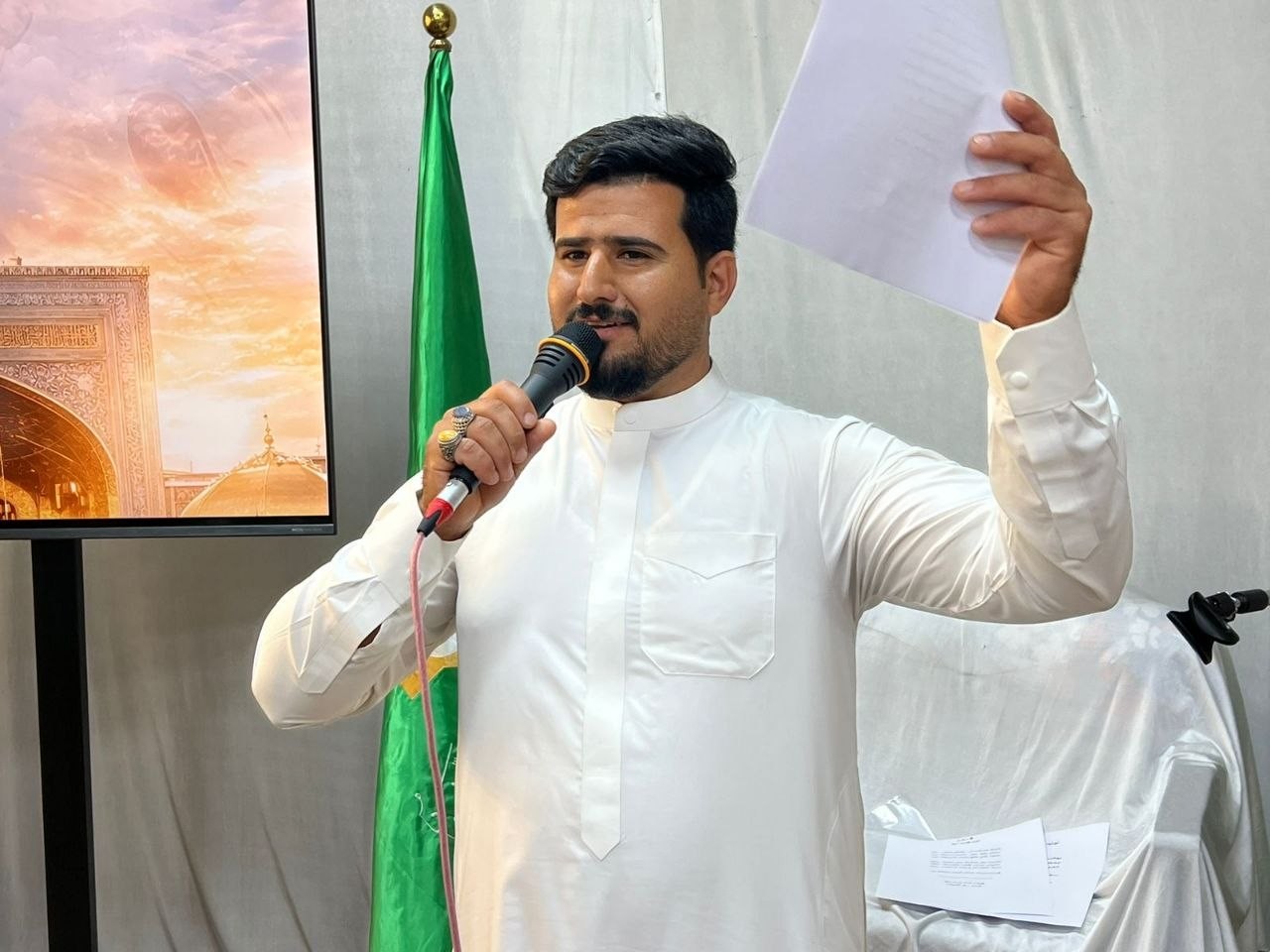 وتضمّن الحفل فقرة إنشادية قدّمها الرادود حسين الخماسي، ألقى خلالها مجموعة من القصائد والأهازيج التي عبّرت عن الفرح بهذه المناسبة العطرة.